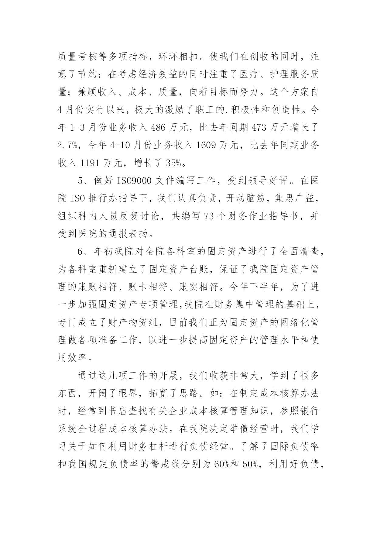 医院财务科工作总结医院财务科工作总结15篇总结是事后对某一阶段的学习或工作情况作加以回顾检查并分析评价的书面材料,它有助于我们寻找工作和事物发展的规律,从而掌握并运用这些规律,让我们一起认真地写一份总结吧。你所见过的总结应该是什么样的?以下是小编收集整理的医院财务科工作总结,希望对大家有所帮助。医院财务科工作总结1从x月底接手骨科医院财务会计以来,迄今为止任职已有x个多月的时间,回首过去的x个多月,内心感慨万千。在此期间我所负责的的财务工作得到了各位领导、各位同事和各科室的大力支持和热情帮助,借此机会我表