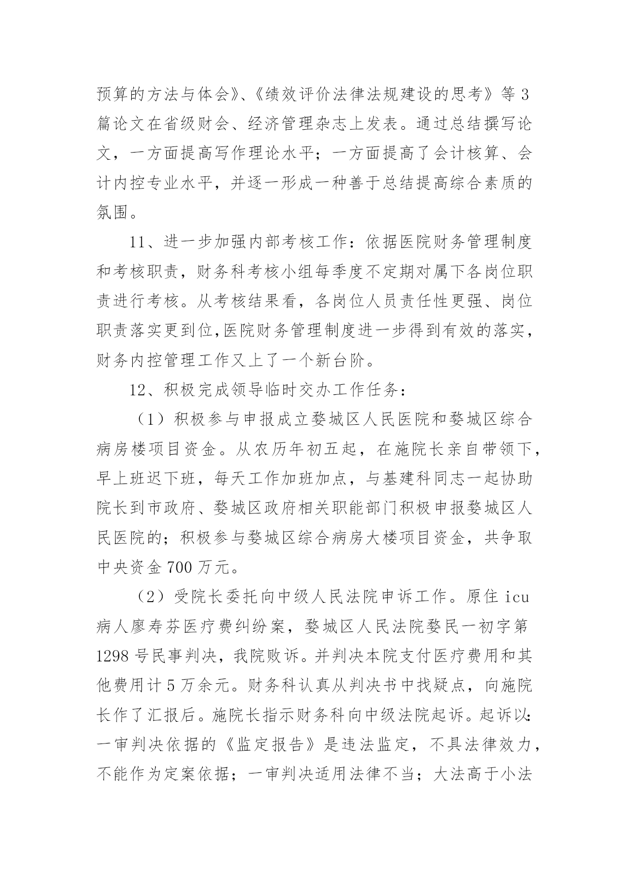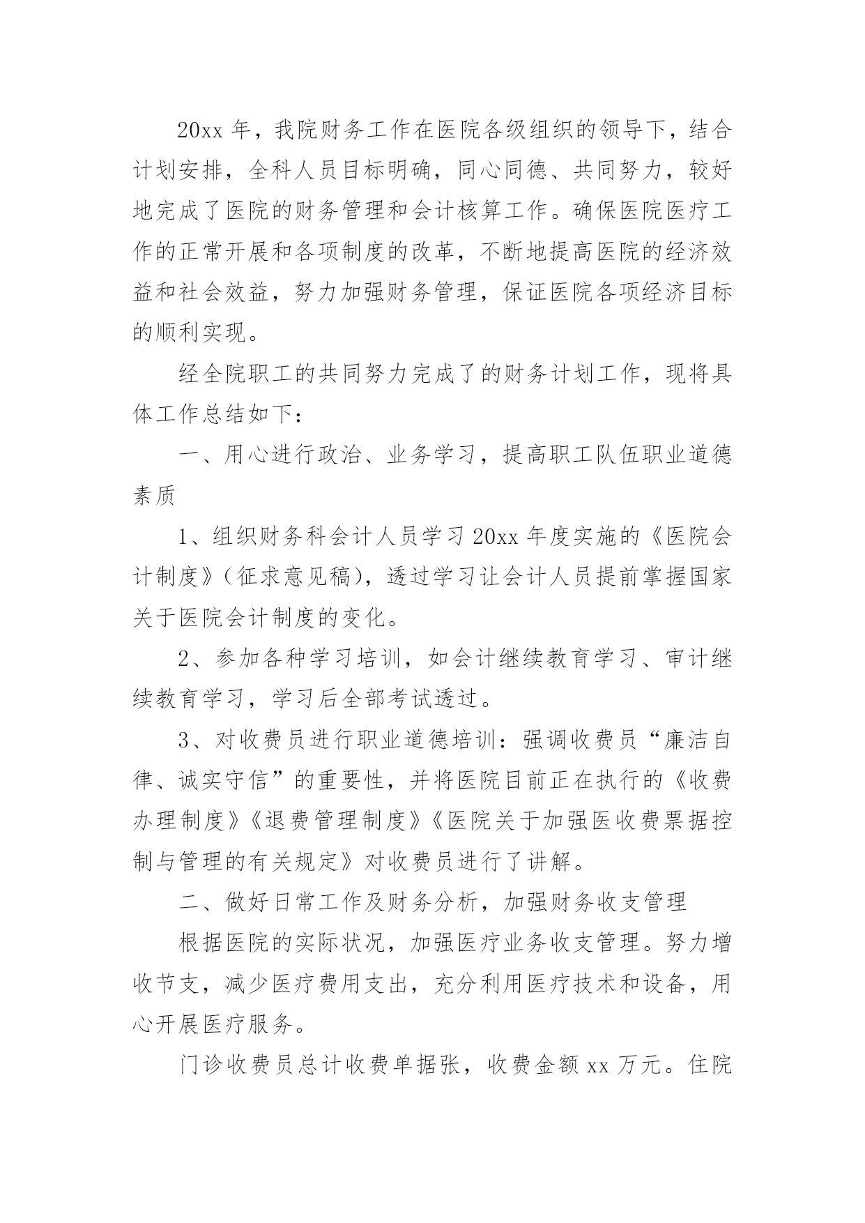 医院财务科工作总结医院财务科工作总结总结是指社会团体、企业单位和个人对某一阶段的学习、工作或其完成情况加以回顾和分析,得出教训和一些规律性认识的一种书面材料,它可以有效锻炼我们的语言组织能力,是时候写一份总结了。那么你真的懂得怎么写总结吗?下面是小编帮大家整理的医院财务科工作总结,希望对大家有所帮助。医院财务科工作总结1一年来,我们财务人员在院党委的正确领导下,积极参加医院组织的各项活动,努力学习业务知识,团结一致,齐心协力,围绕我院年初既定的工作目标,较好地完成了各项工作任务。汇报如下:一、今年新开展的
