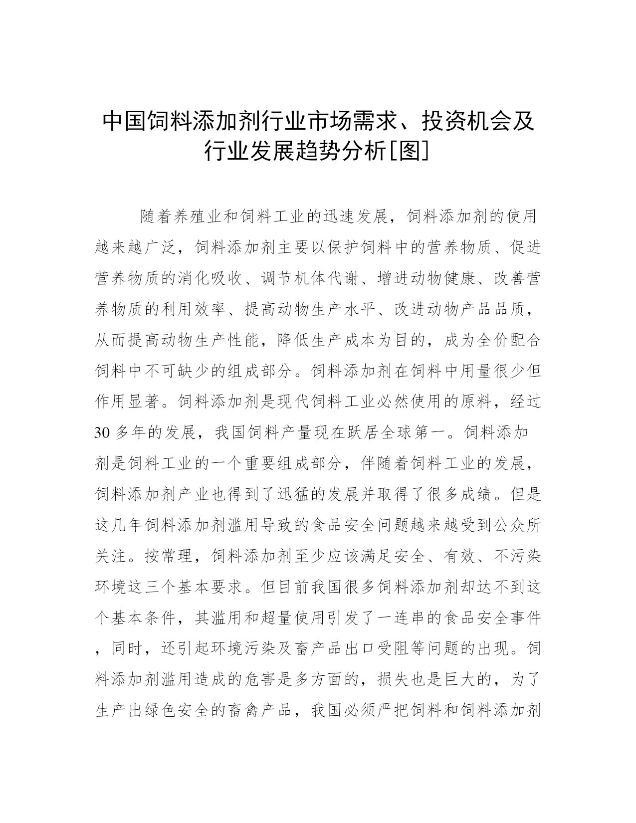 中国饲料添加剂行业市场需求、投资机会及行业发展趋势分析[图].docx