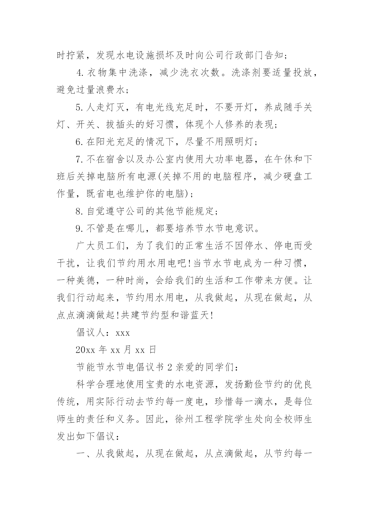 节能节水节电倡议书节能节水节电倡议书(精选6篇)在现实社会中,我们使用上倡议书的情况与日俱增,倡议书有利于倡议者交代清楚倡议活动的原因,以及当时的各种背景事实。在写之前,可以先参考范文,以下是小编为大家整理的节能节水节电倡议书(精选6篇),欢迎大家借鉴与参考,希望对大家有所帮助。节能节水节电倡议书1亲爱的同学们:身居校园,也许我们并不缺少水,也不会有缺水的危机。但在同一片大地上,我们的一些同胞正饱受着缺水的煎熬,且日趋严峻,已有人为寻找“生命之水”献出了宝贵的生命。为此,在国家抗旱救灾的关键时期,向同学们
