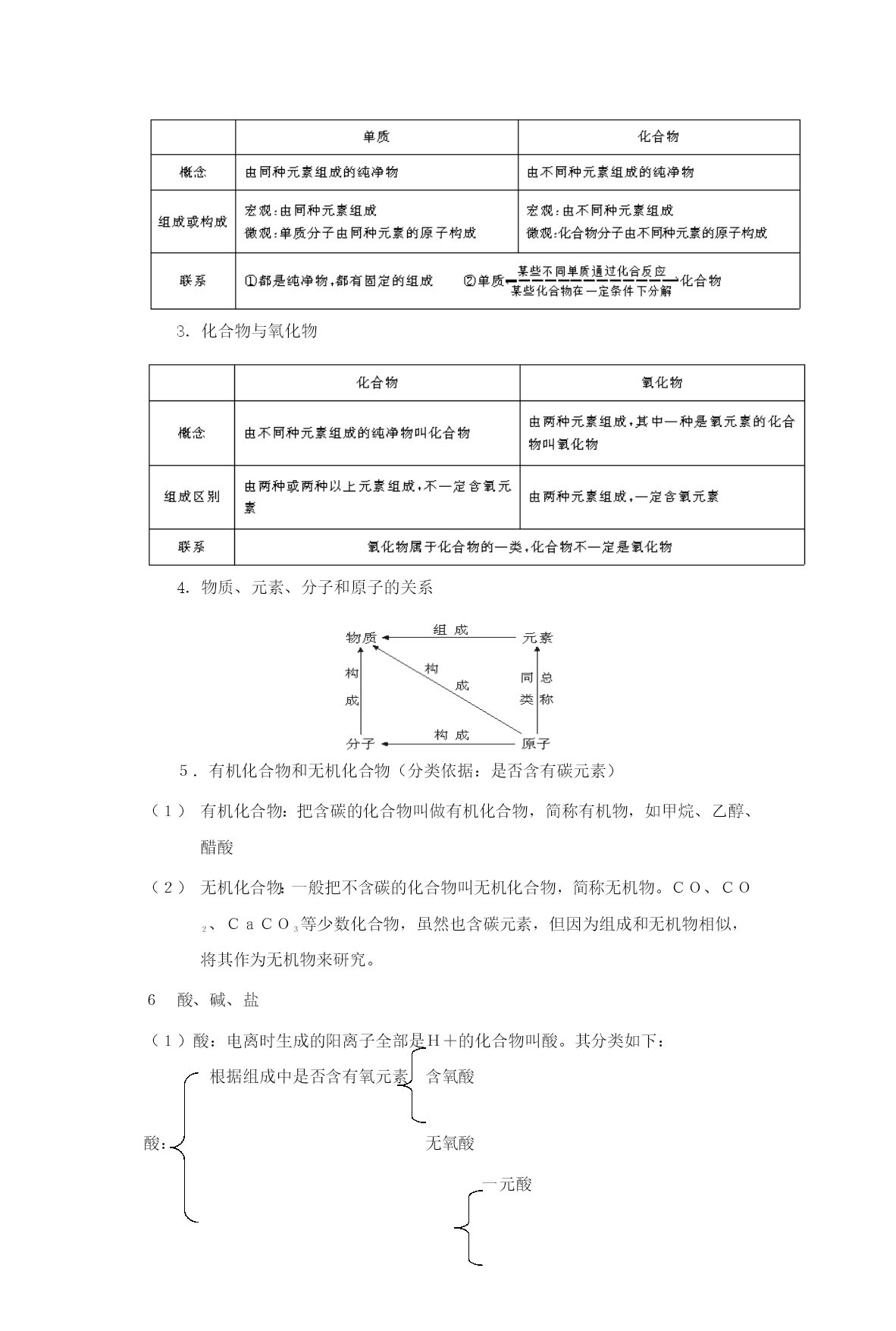 -2-物质的分类[知识归纳]一、[我们学了什么]1.纯净物和混合物纯净物混合物宏观组成由同种物质组成由不同种物质组成微观构成(对分子构成的物质而言)由同种分子构成的物质由不同种分子构成的物质组成、性质固定不固定,注:混合物里各物质都保持各自原来的性质2.单质和化合物3.化合物与氧化物4.物质、元素、分子和原子的关系5.有机化合物和无机化合物(分类依据:是否含有碳元素)有机化合物:把含碳的化合物叫做有机化合物,简称有机物,如甲烷、乙醇、醋酸无机化合物:一般把不含碳的