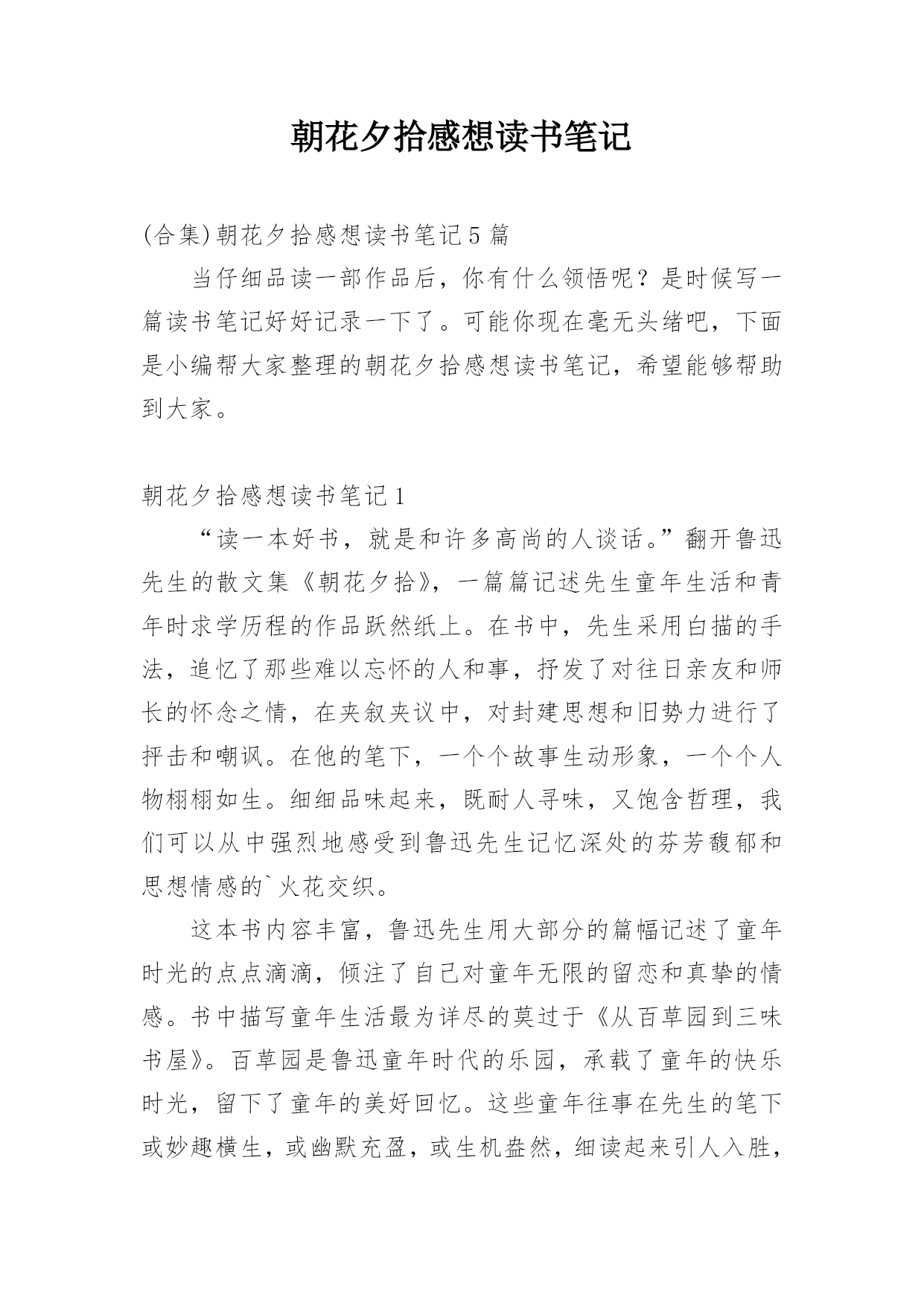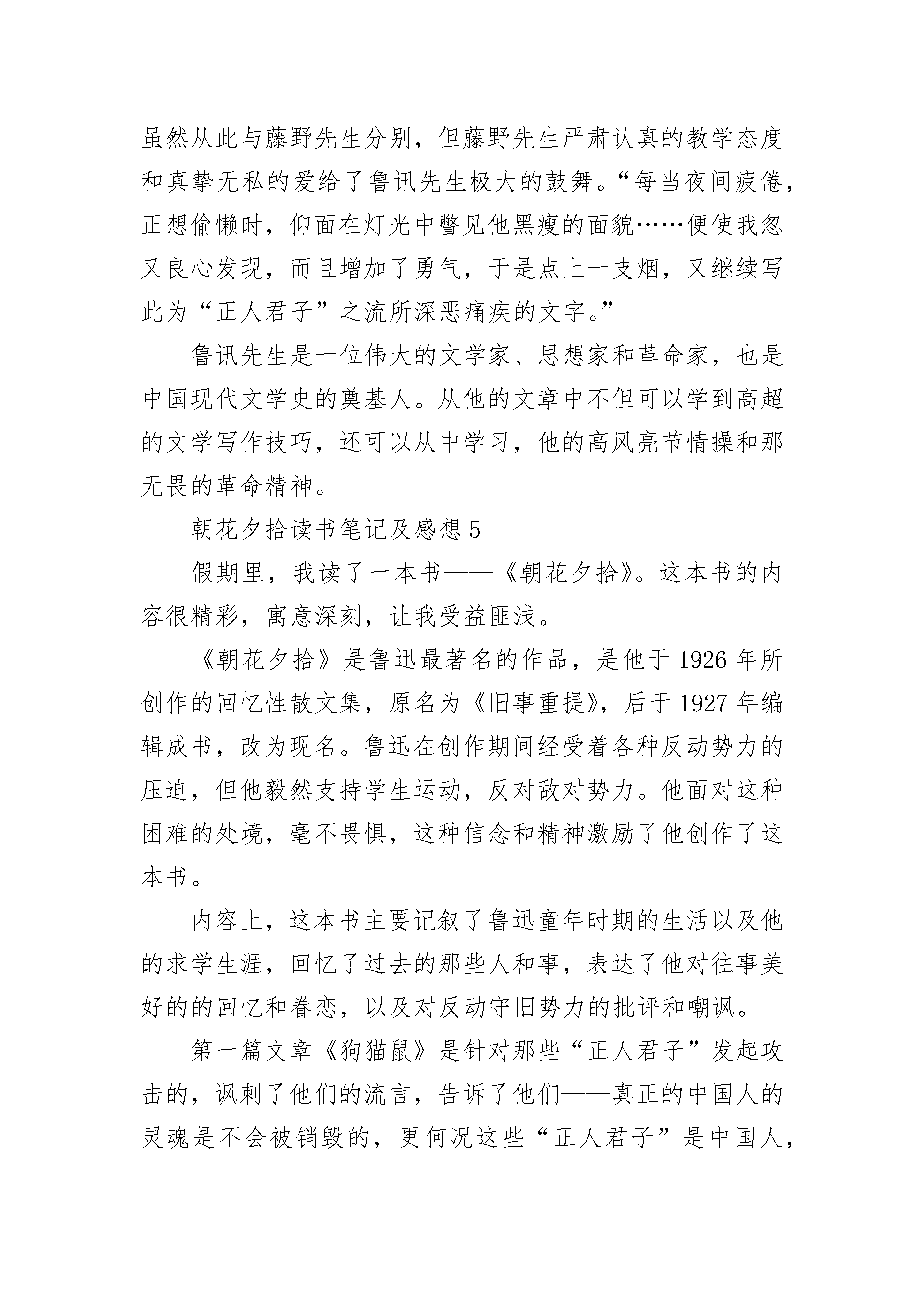 朝花夕拾读书笔记及感想五篇2022.docx