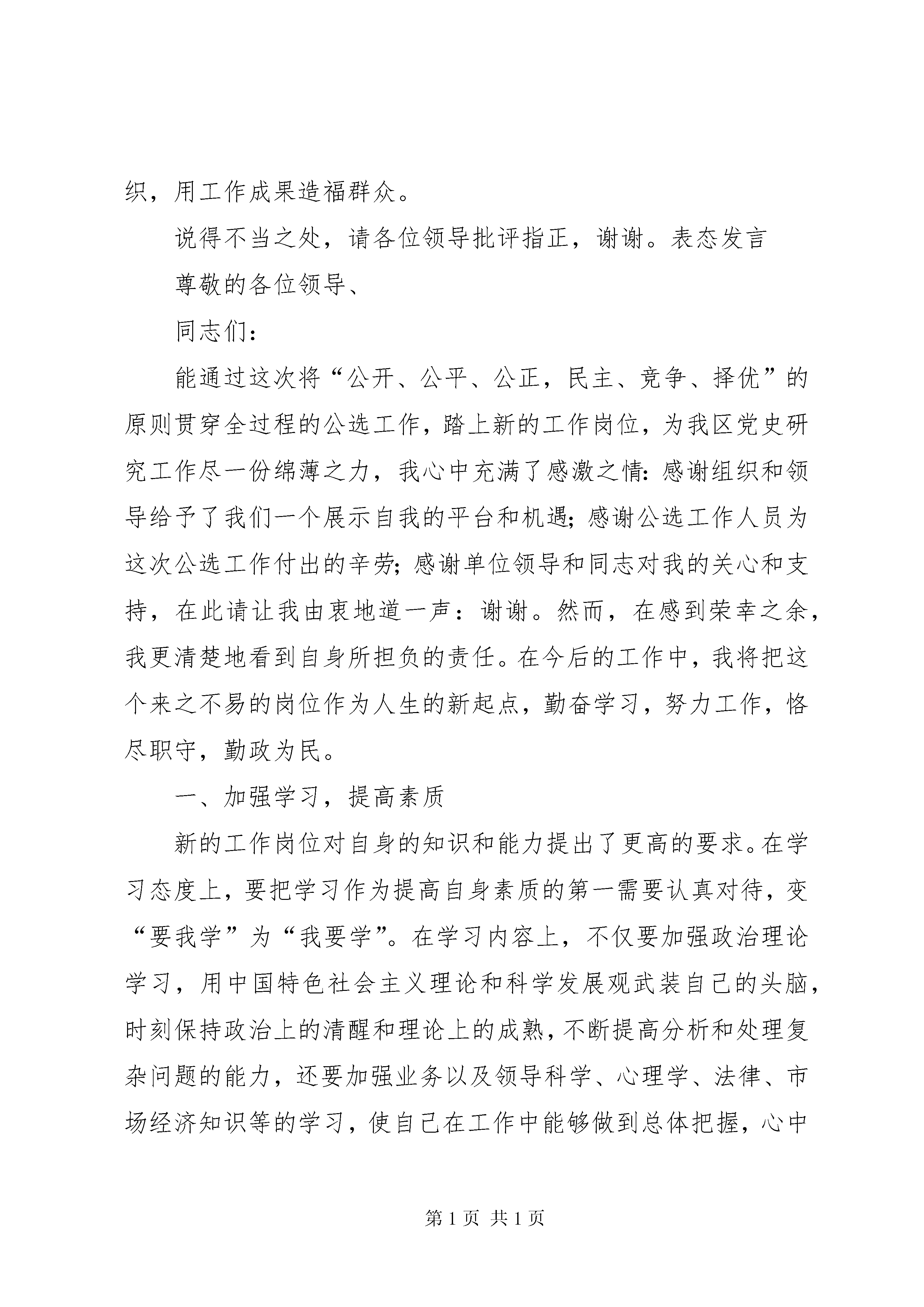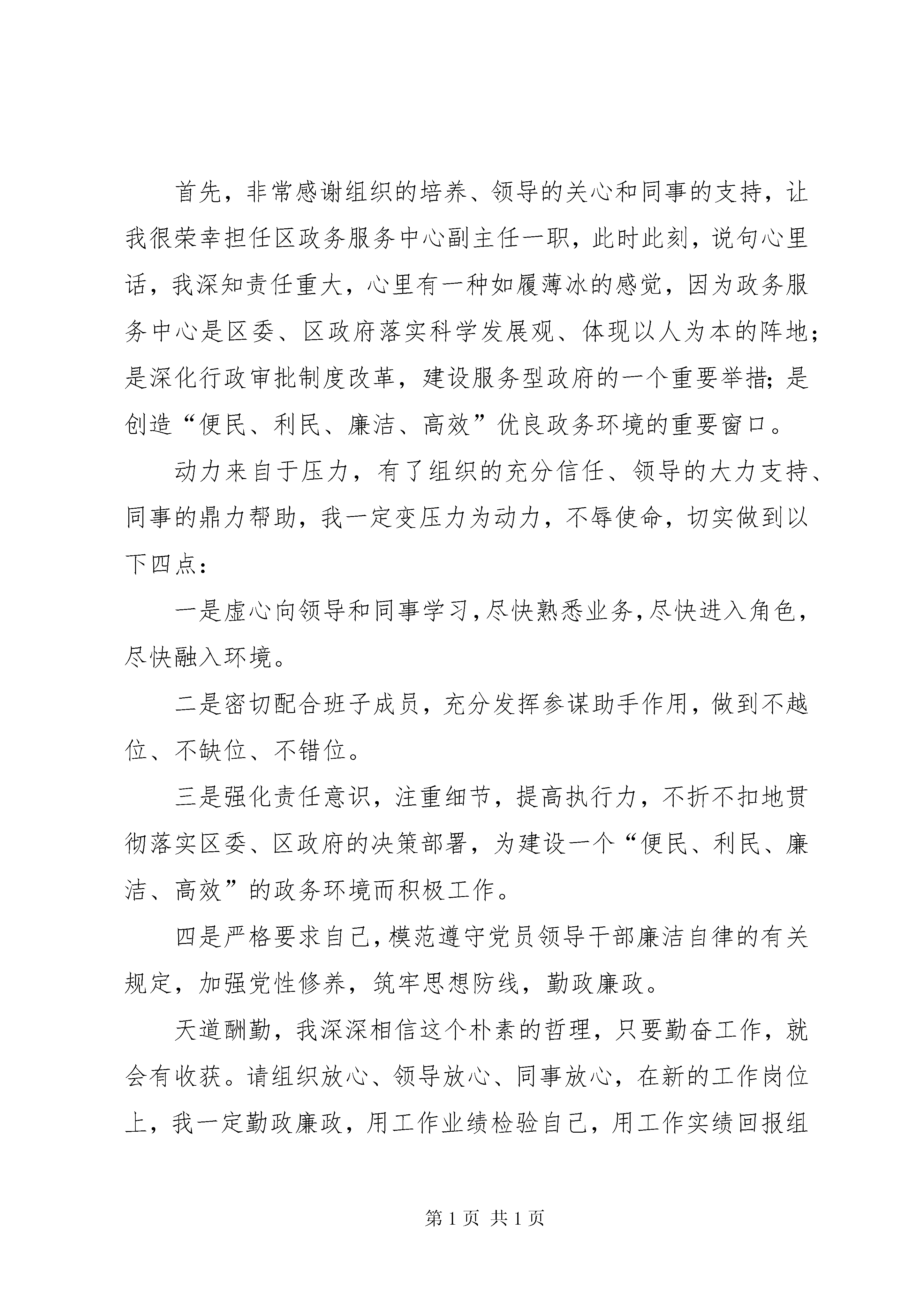 全国基层综治办主任培训发言典型材料综治办主任任职表态发言尊敬的各位领导、同志们:首先我衷心感谢乡党委、政府的信任,感谢各位领导的关心,感谢同志们对我的支持。在此次全县中层干部竞争上岗活动中我被选为乡综治办主任一职。这次任职不仅是对我的一种认同与接受,更是对我的一份希望和重托。让我有更多的机会,为槐坎服务。在今后的工作中,我将苦学为先,实干为本,团结为上,廉洁为要,努力适应新形势,把握新要求以良好业绩,回报领导和同事们的重托与期望。在此,我作四方面的表态:一、讲政治,强素质,争做学