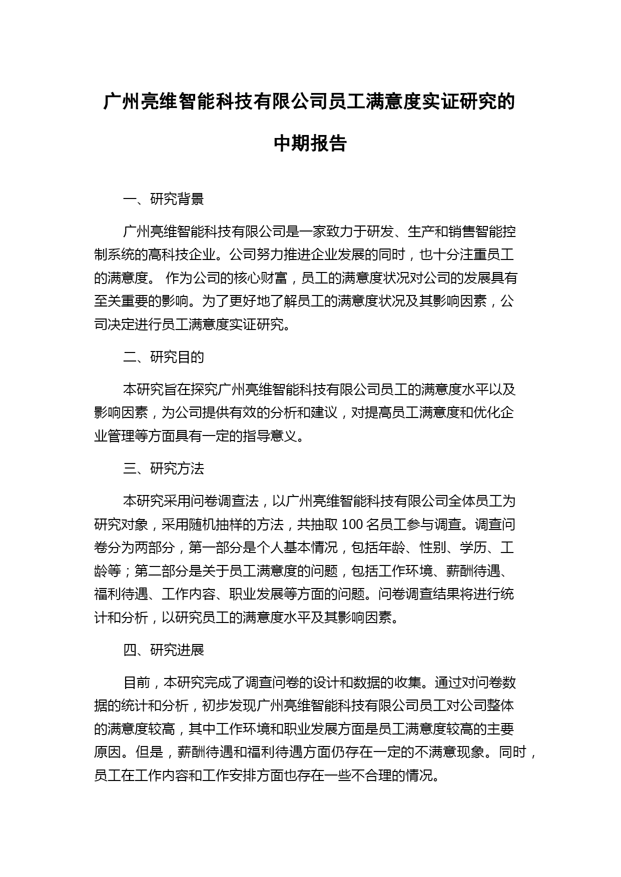 广州亮维智能科技有限公司员工满意度实证研究的中期报告.docx