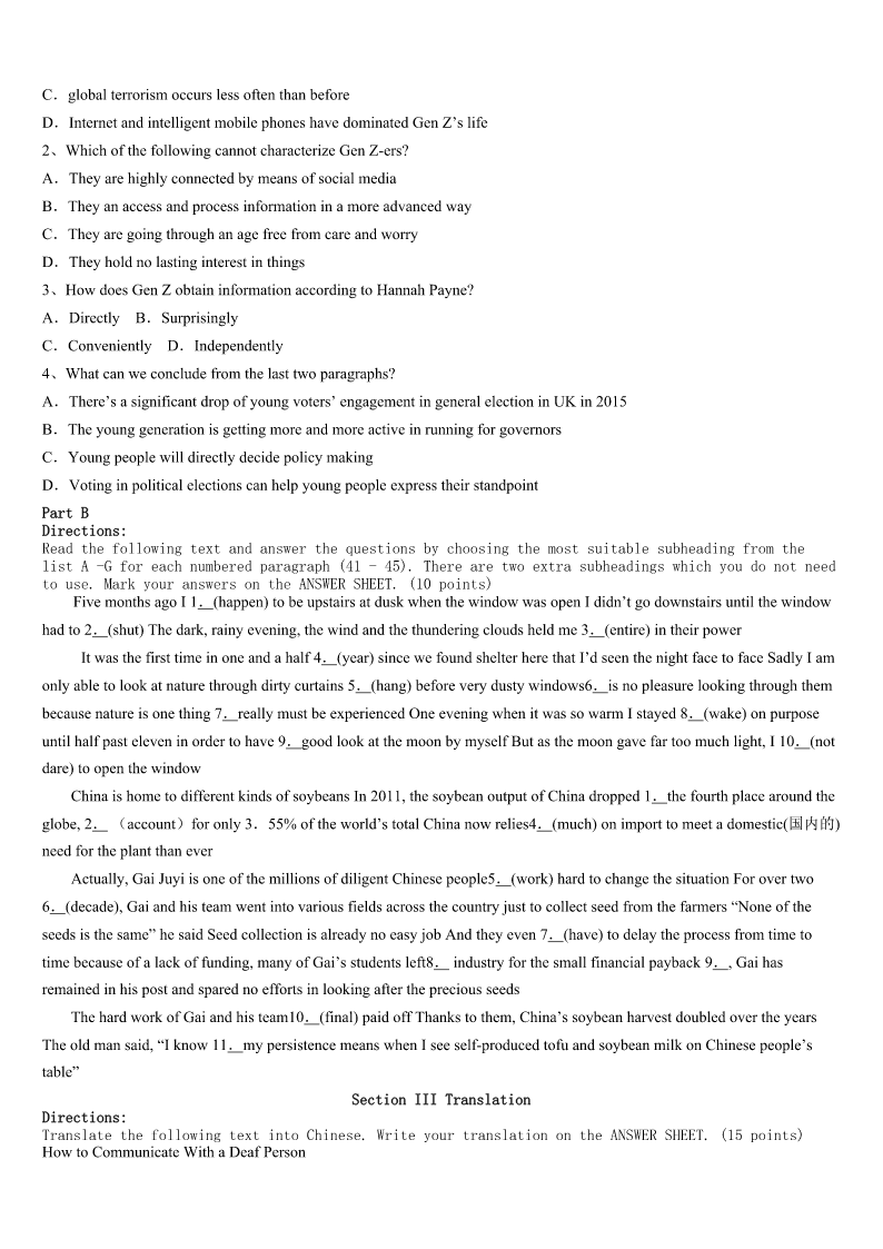 考研《英语一》淮滨县2023年高分通关卷SectionIUseofEnglishDirections:Readthefollowingtext.Choosethebestword(s)foreachnumberedblankandmarkA,B,CorDontheANSWERSHEET.(10points)Lastyear,Imetwithamajoraccident.Thisaccidenttotallychangedthe1Iusedtolookatthingsinmylife.Likeeveryda