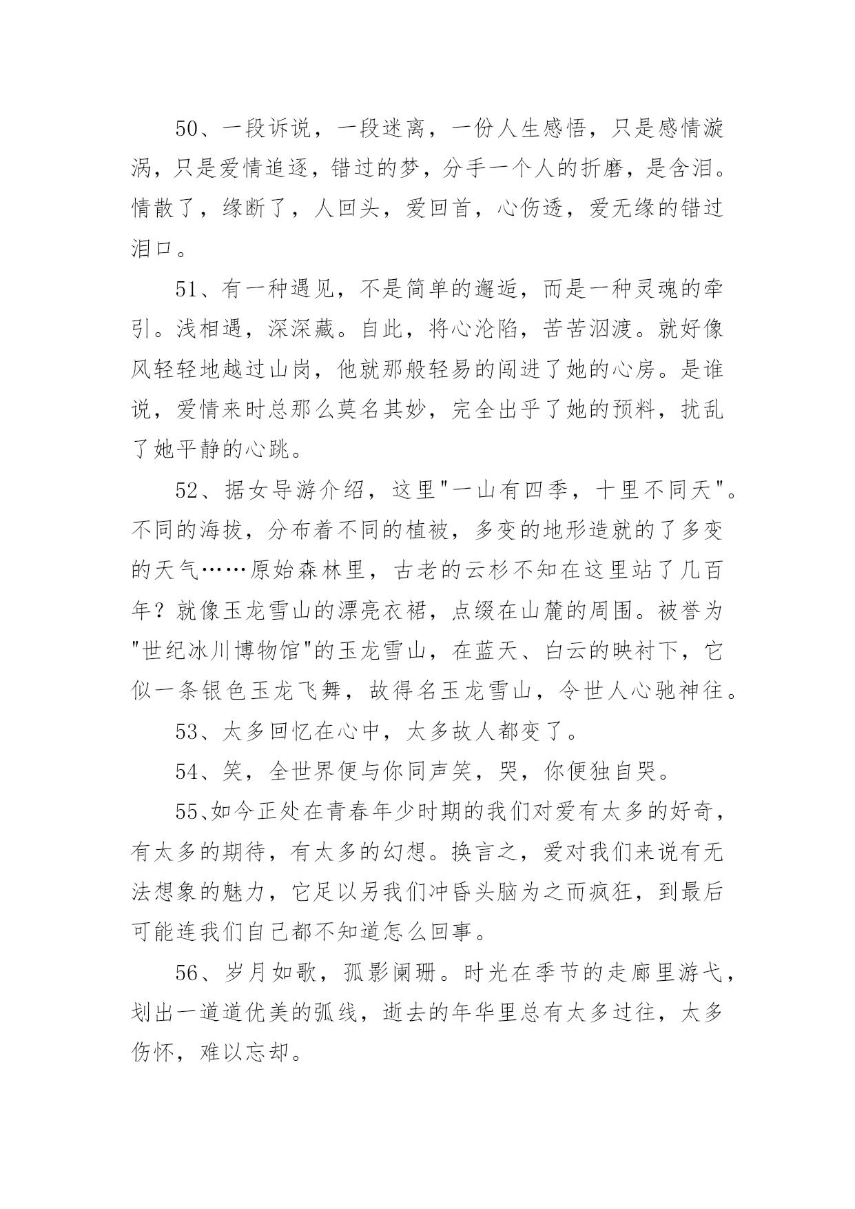 唯美爱情句子摘录【推荐】唯美爱情句子摘录90句在我真的放弃你的时候,请让我再喜欢你一回,我不能那么忍心的说放弃就放弃,不能因为你的拒绝而觉得自己真的就没机会了。我始终相信,感情需要的是培养,只要我一心一意的喜欢你,不管三年五年,只要用心了,你始终还是会被感动的。总是认为自己不差,你迟早会被我感动的。下面是小编精心整理的唯美爱情句子90句,欢迎大家分享。1、寒冷的月光再一次照进了我记忆的窗边,回忆又一次游走在记忆的深处,如此清晰的的记得,那年一个人独自奔赴上海旅程。父亲坐在我旁边说给自己的那一席话,还有母亲