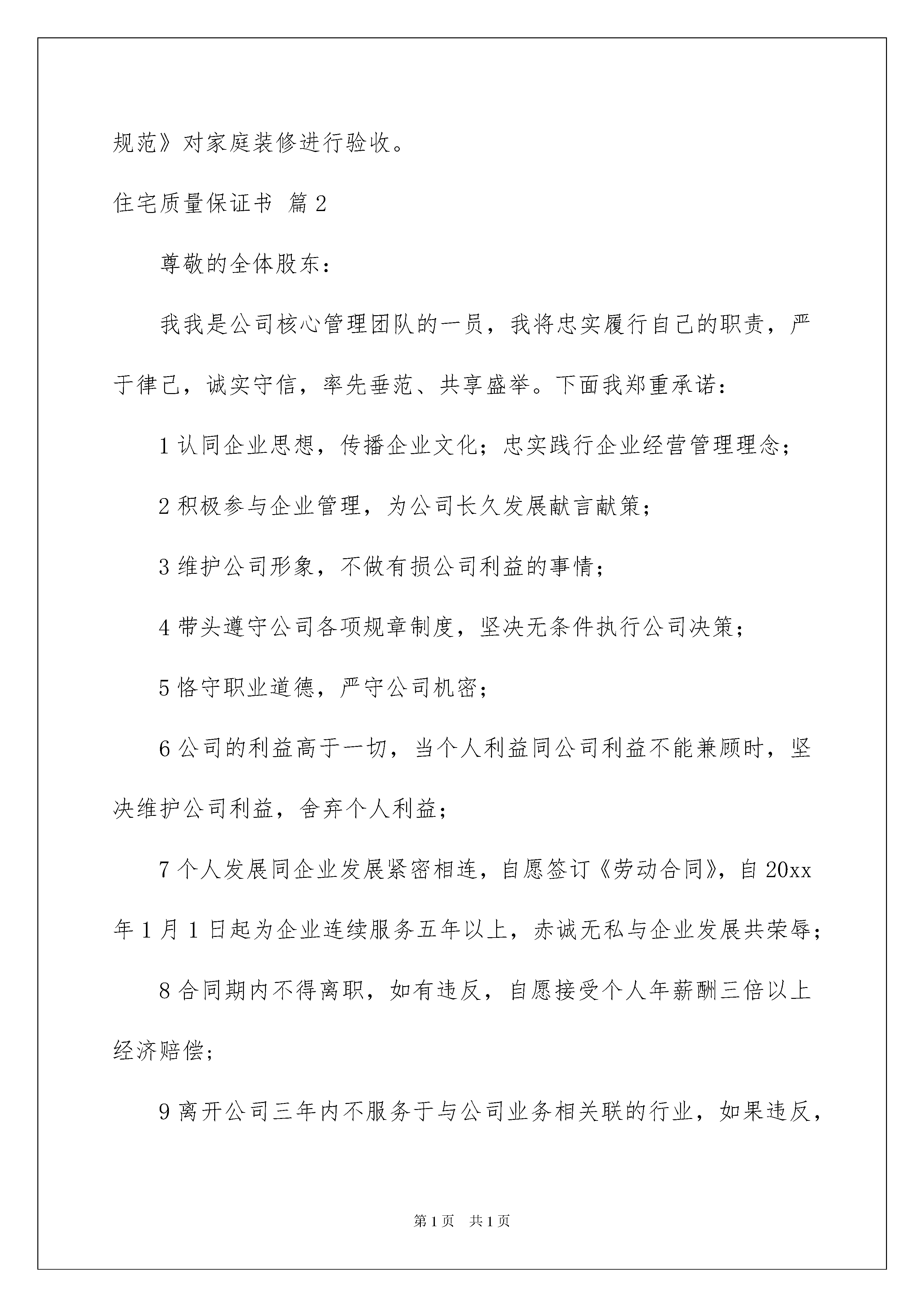 2022关于住宅质量保证书范文锦集十篇关于住宅质量保证书范文锦集十篇在日新月异的现代社会中,越来越多的事务都会使用到保证书,保证书是以集体或个人名义以一种较为强烈的态度向上级组织、领导或个人表决心下保证时所使用的一种书信。那么保证书应该怎么写才合适呢?下面是我收集整理的住宅质量保证书10篇,欢迎阅读与收藏。住宅质量保证书篇1质量验收:建设单位:设计单