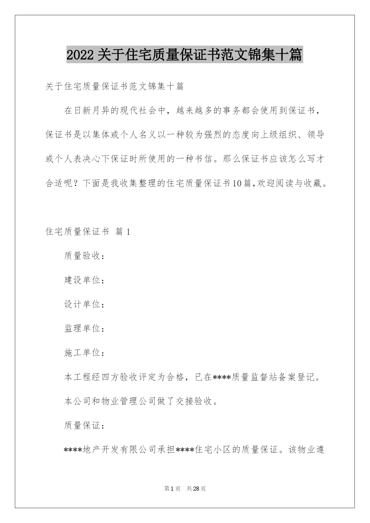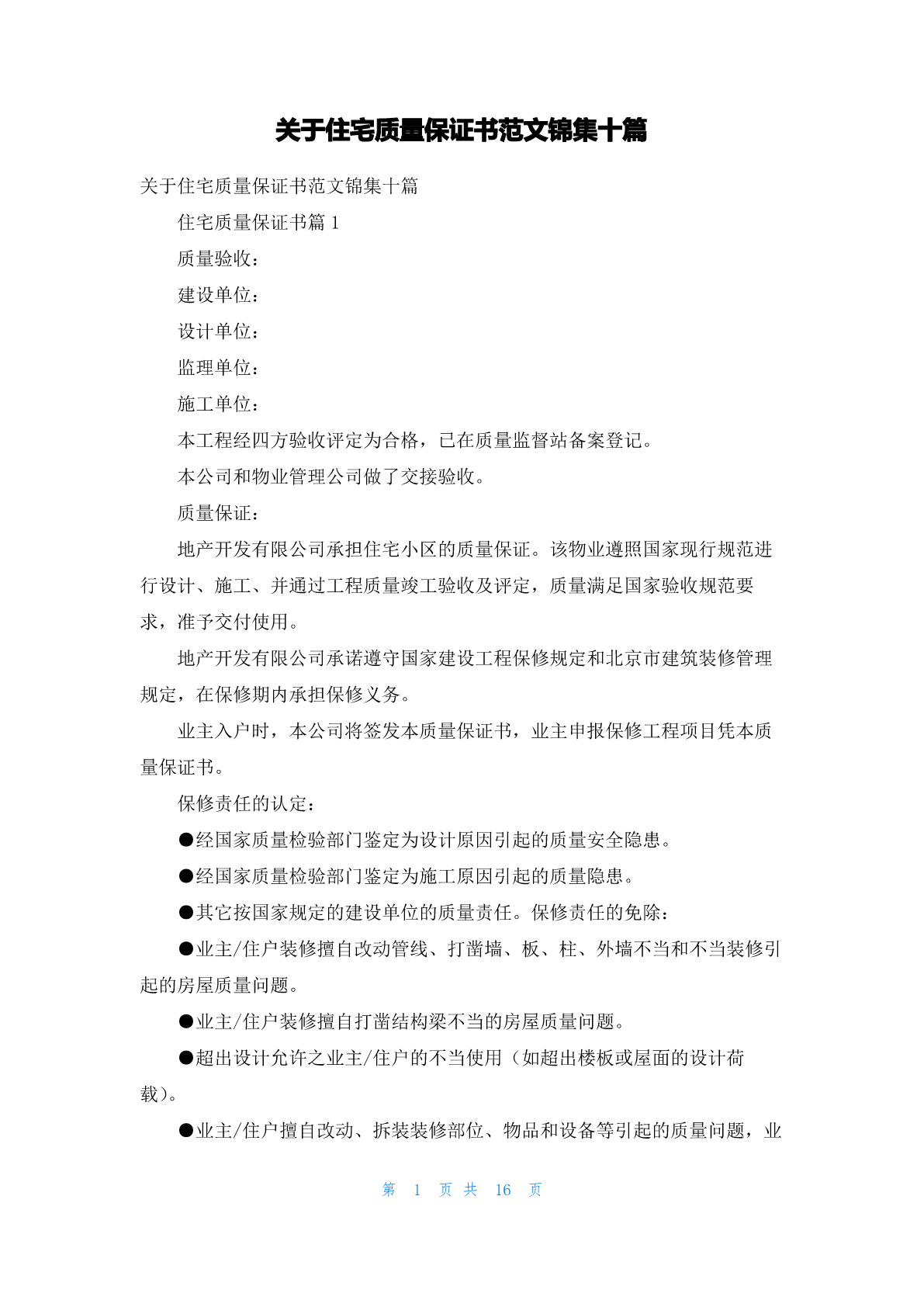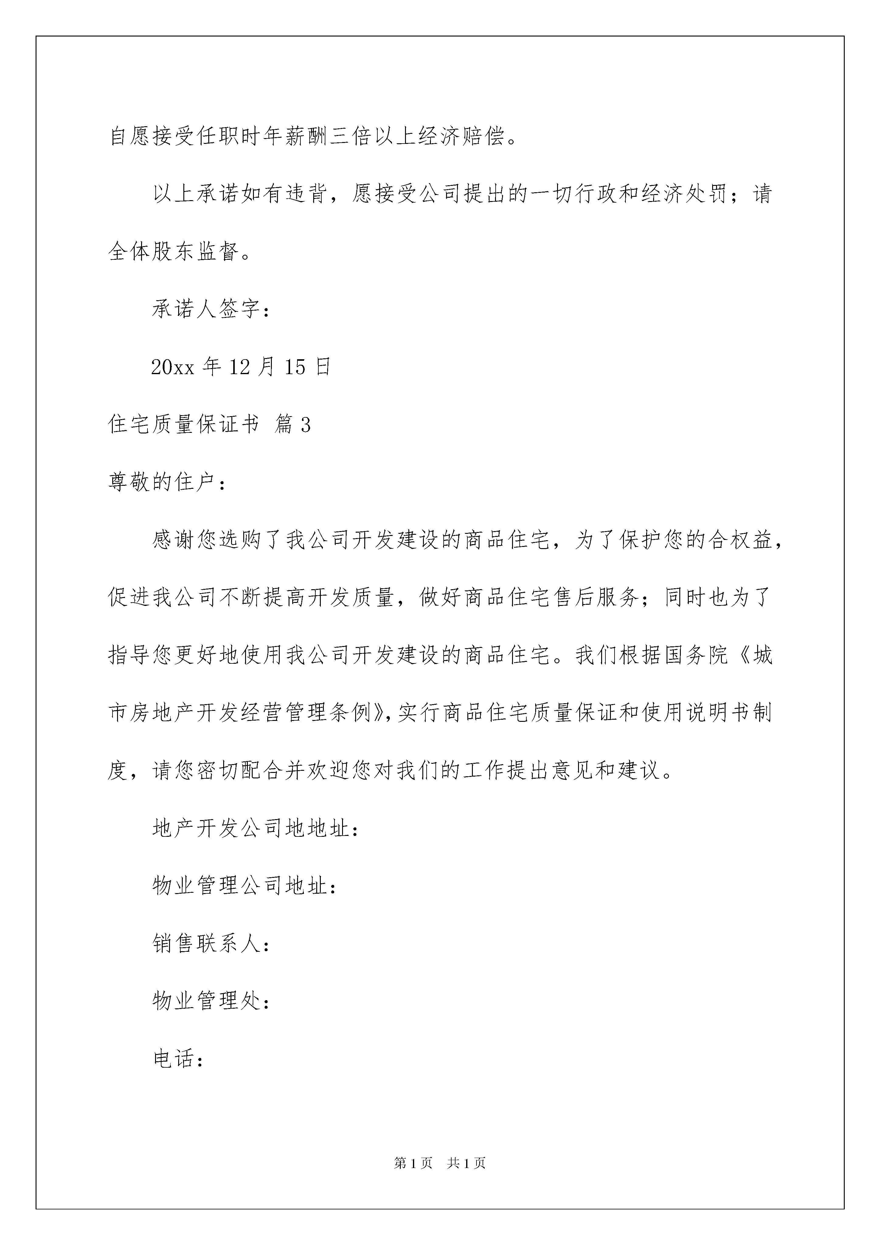 2022关于住宅质量保证书范文锦集十篇关于住宅质量保证书范文锦集十篇在日新月异的现代社会中越来越多的事务都会使用到保证书保证书是以集体或个人名义以一种较为强烈的态度向上级组织、领导或个人表决心下保证时所使用的一种书信。那么保证