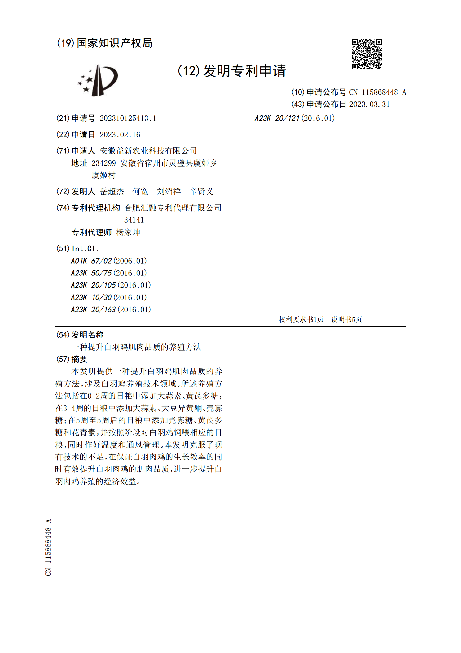 一种提升白羽鸡肌肉品质的养殖方法.pdf