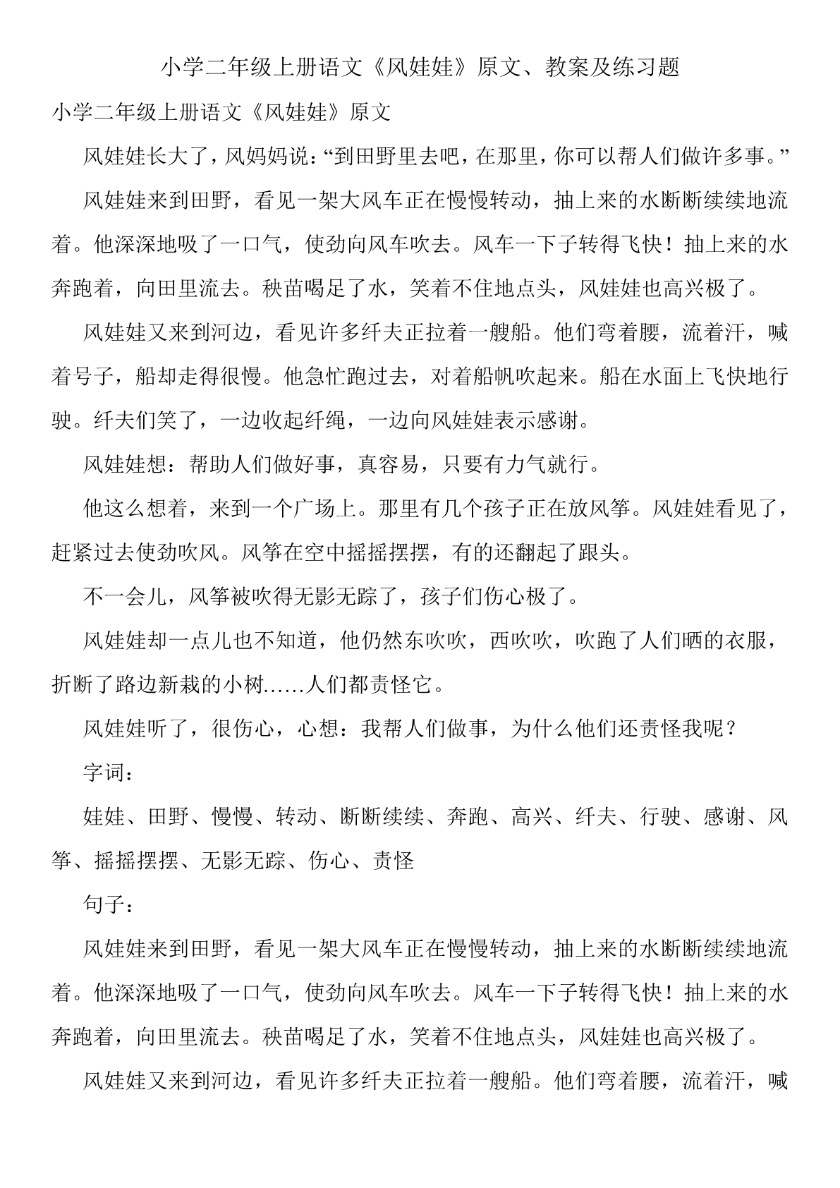 小学二年级上册语文《风娃娃》原文、教案及练习题.pdf