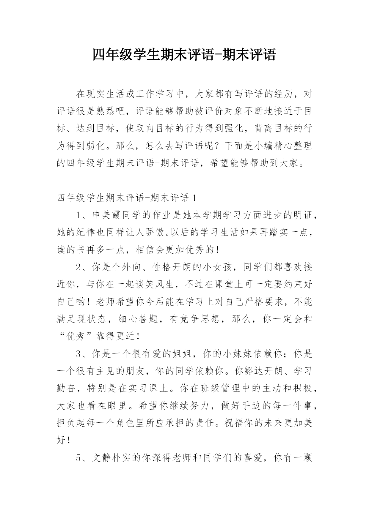 四年级下册学生期末评语_四年级下册学生期末评语怎么写.docx