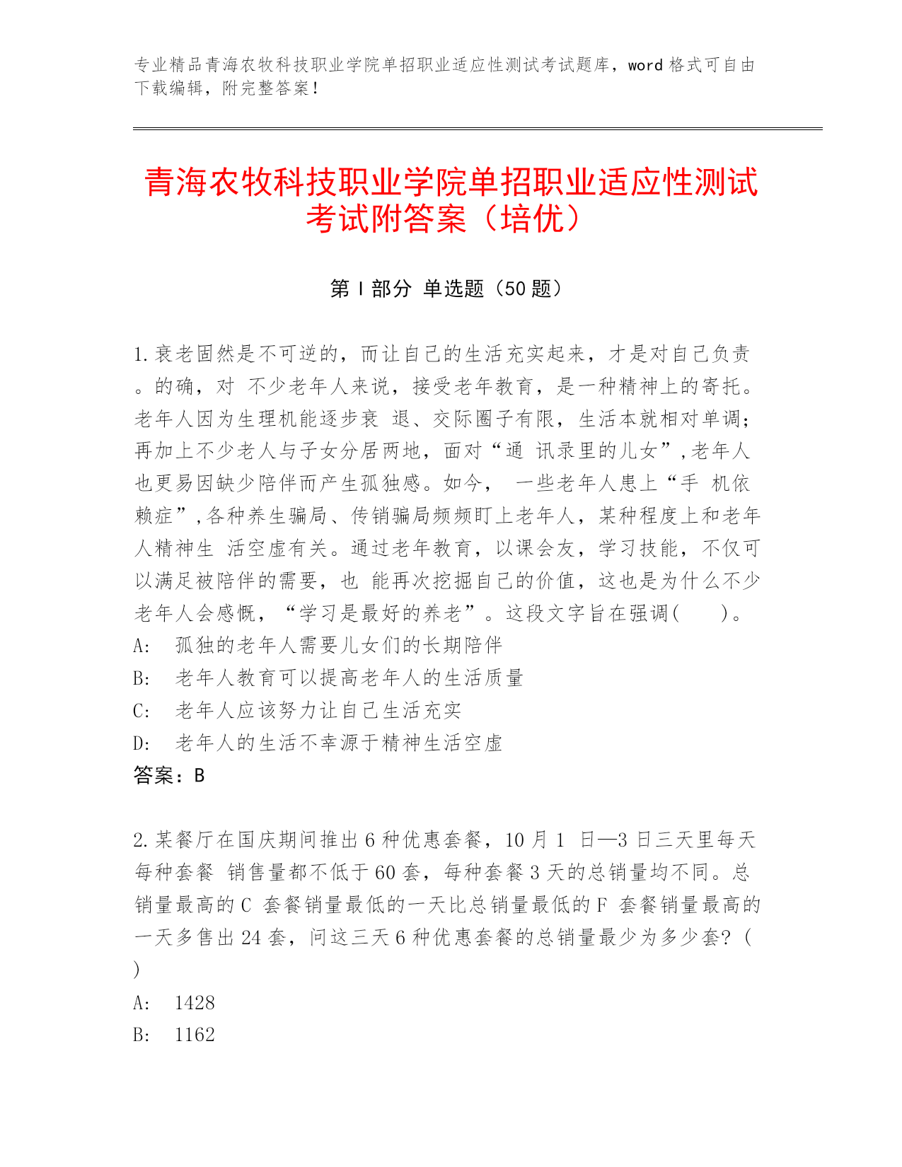 青海农牧科技职业学院单招职业适应性测试考试王牌题库【A卷】.docx
