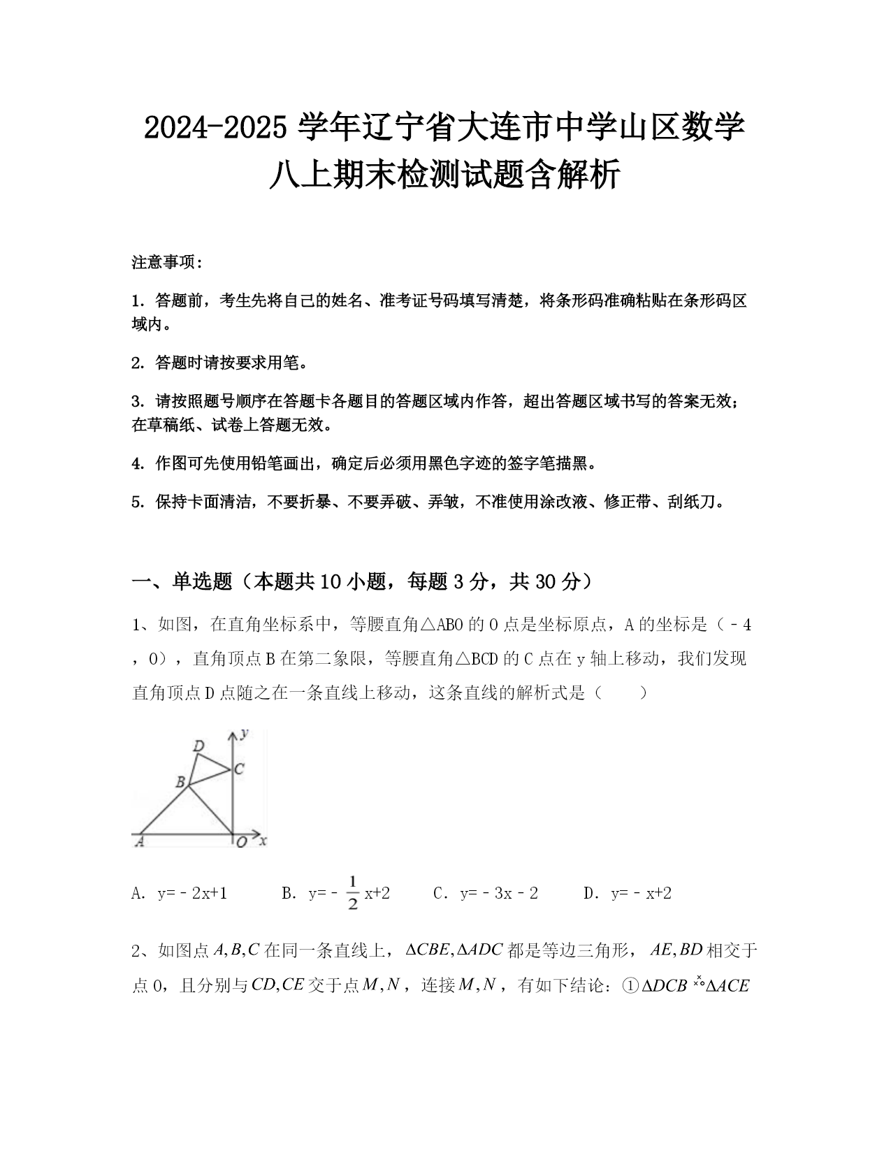 2024-2025学年辽宁省大连市中学山区数学八上期末检测试题含解析.docx