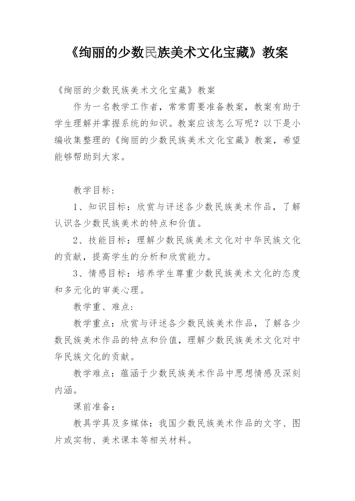 《绚丽的少数民族美术文化宝藏》教案.docx