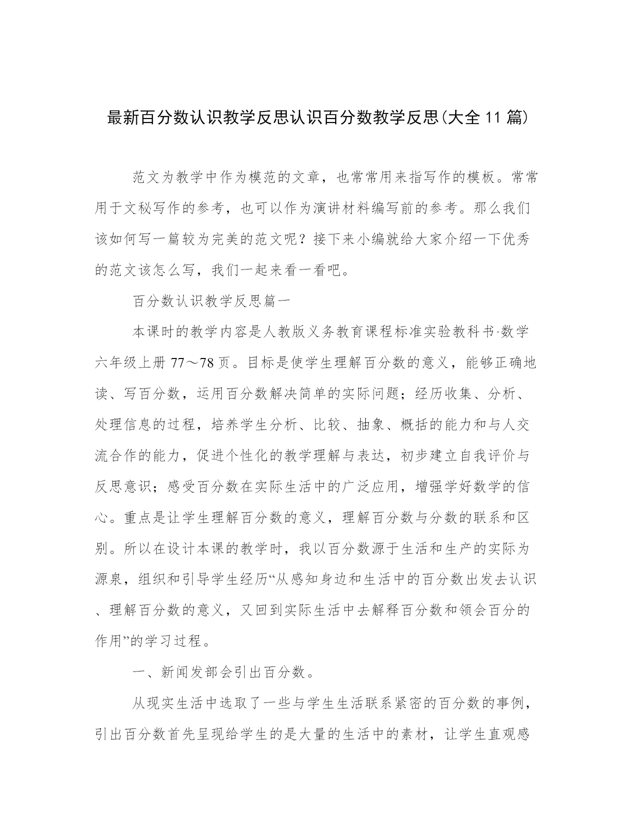 最新百分数认识教学反思认识百分数教学反思(大全11篇).docx