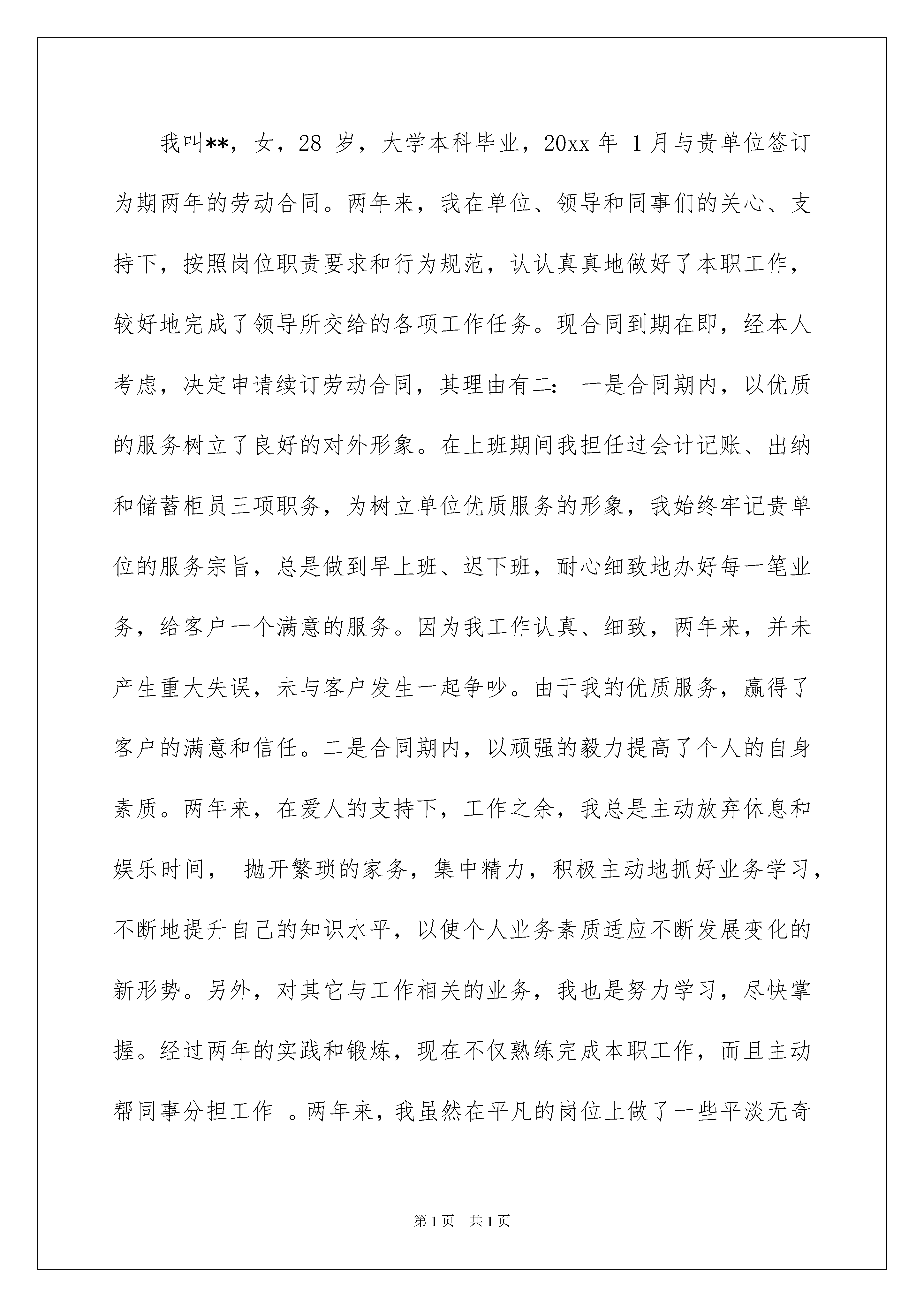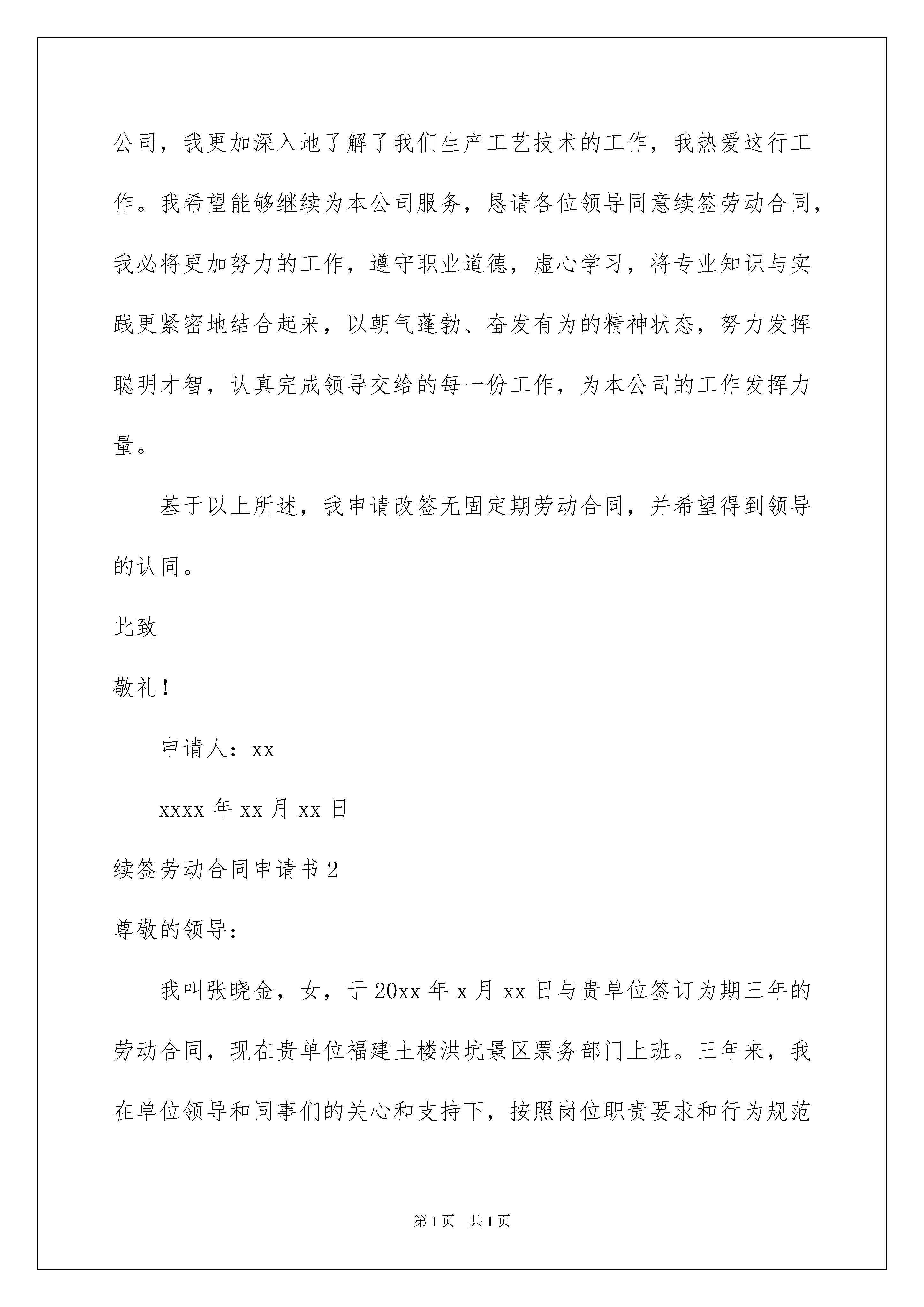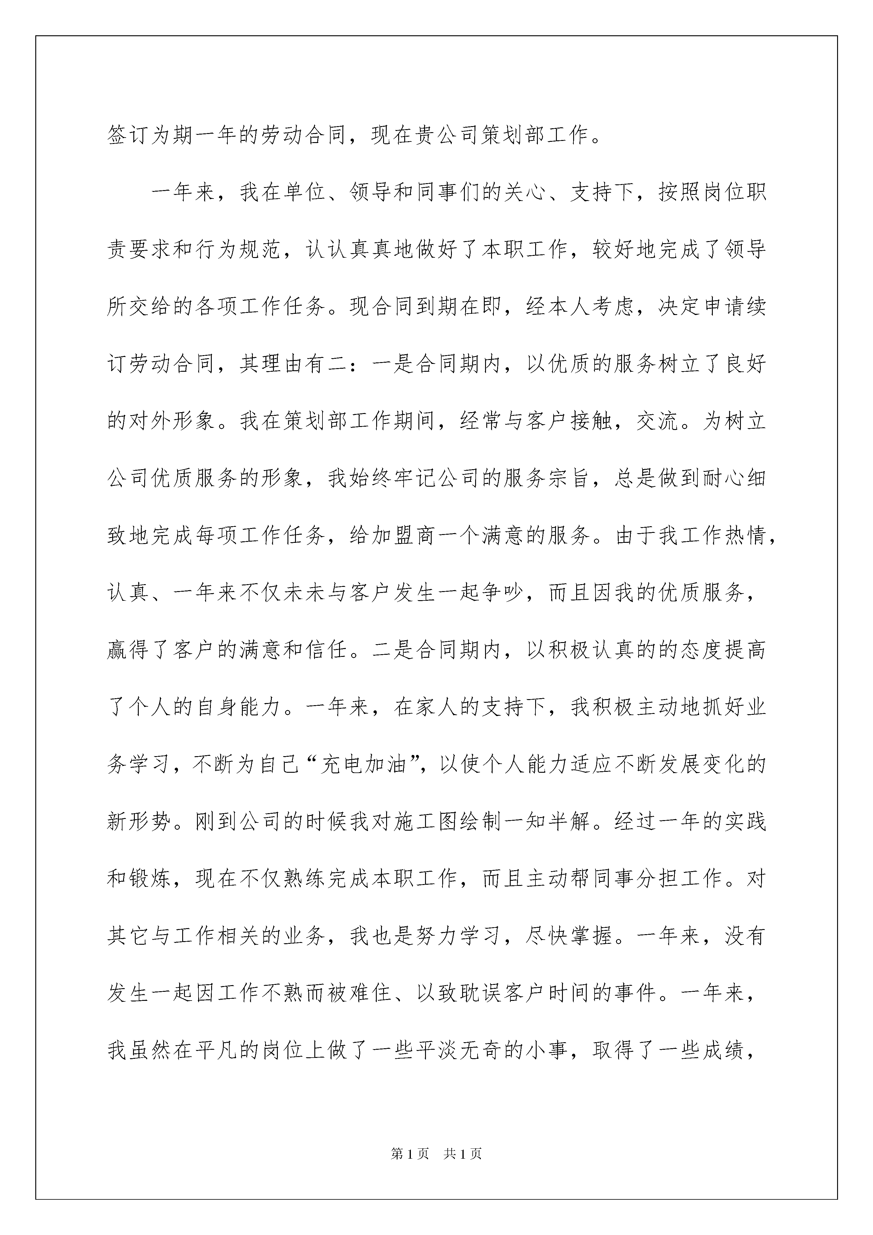 2022劳动合同续签申请书劳动合同续签申请书集合15篇在人们愈发重视契约的社会中关于合同的利益纠纷越来越多合同是对双方的保障又是一种约束。那么大家知道合同的格式吗?以下是我细心整理的劳动合同续签申请书仅供参考希望能够帮