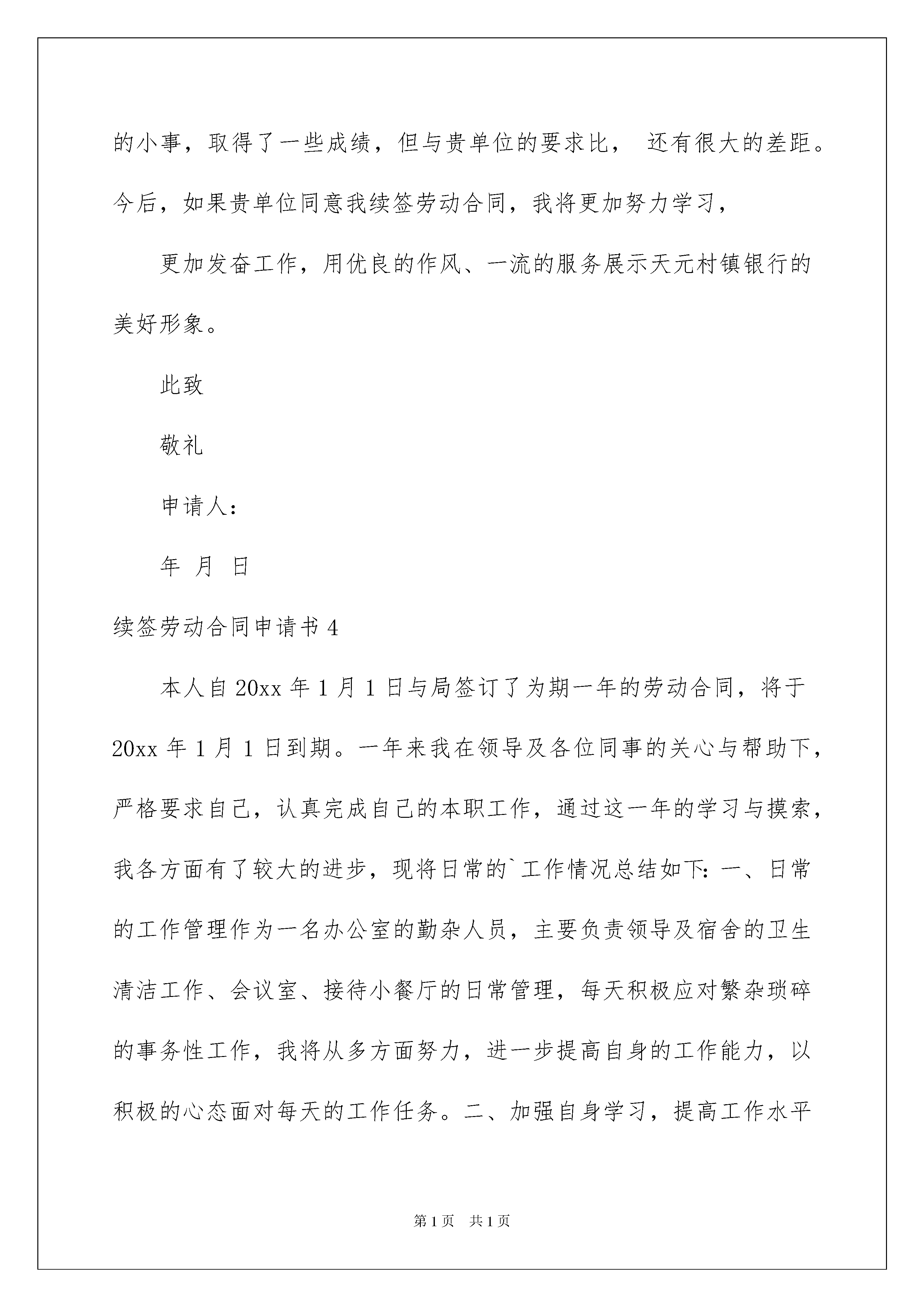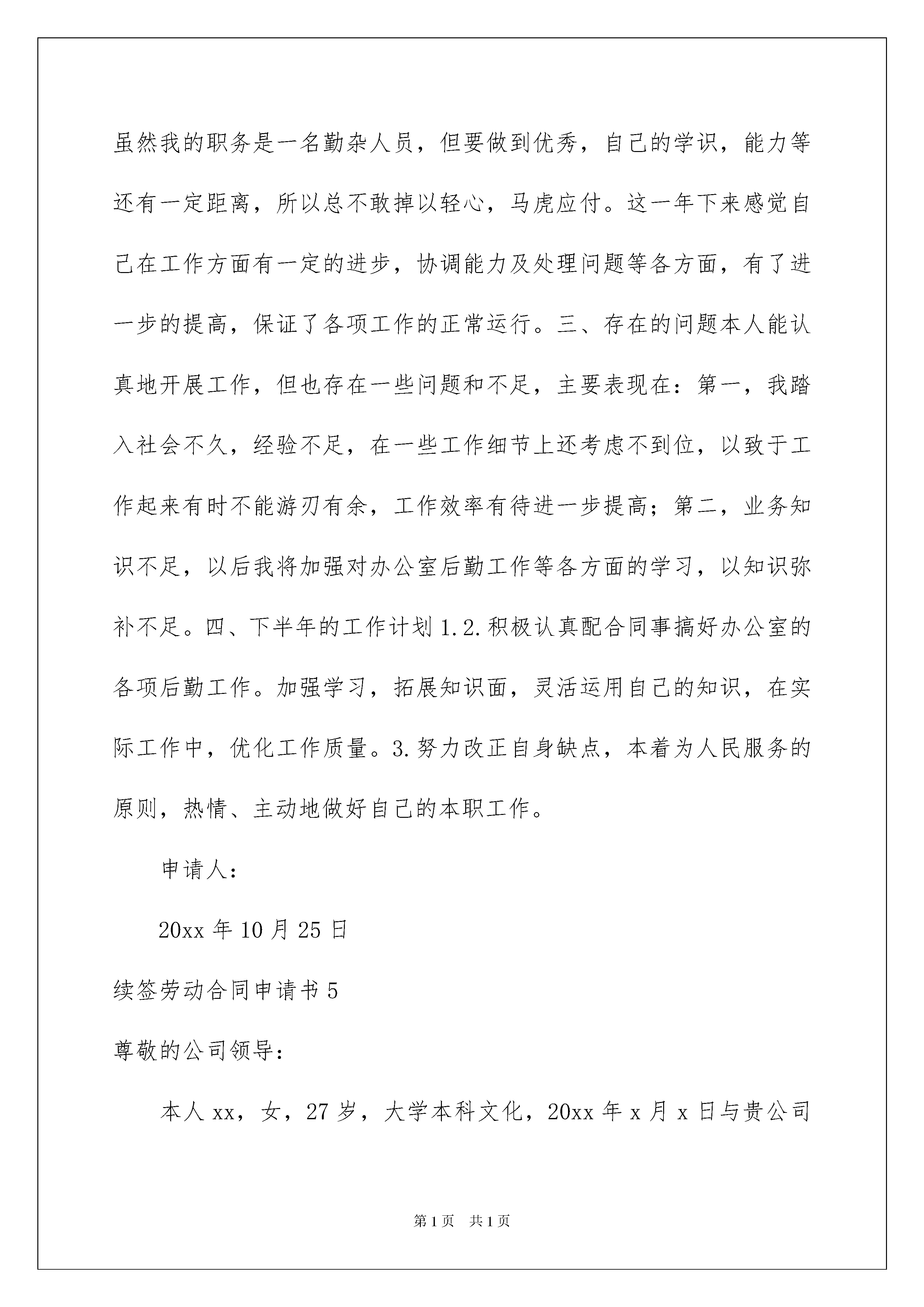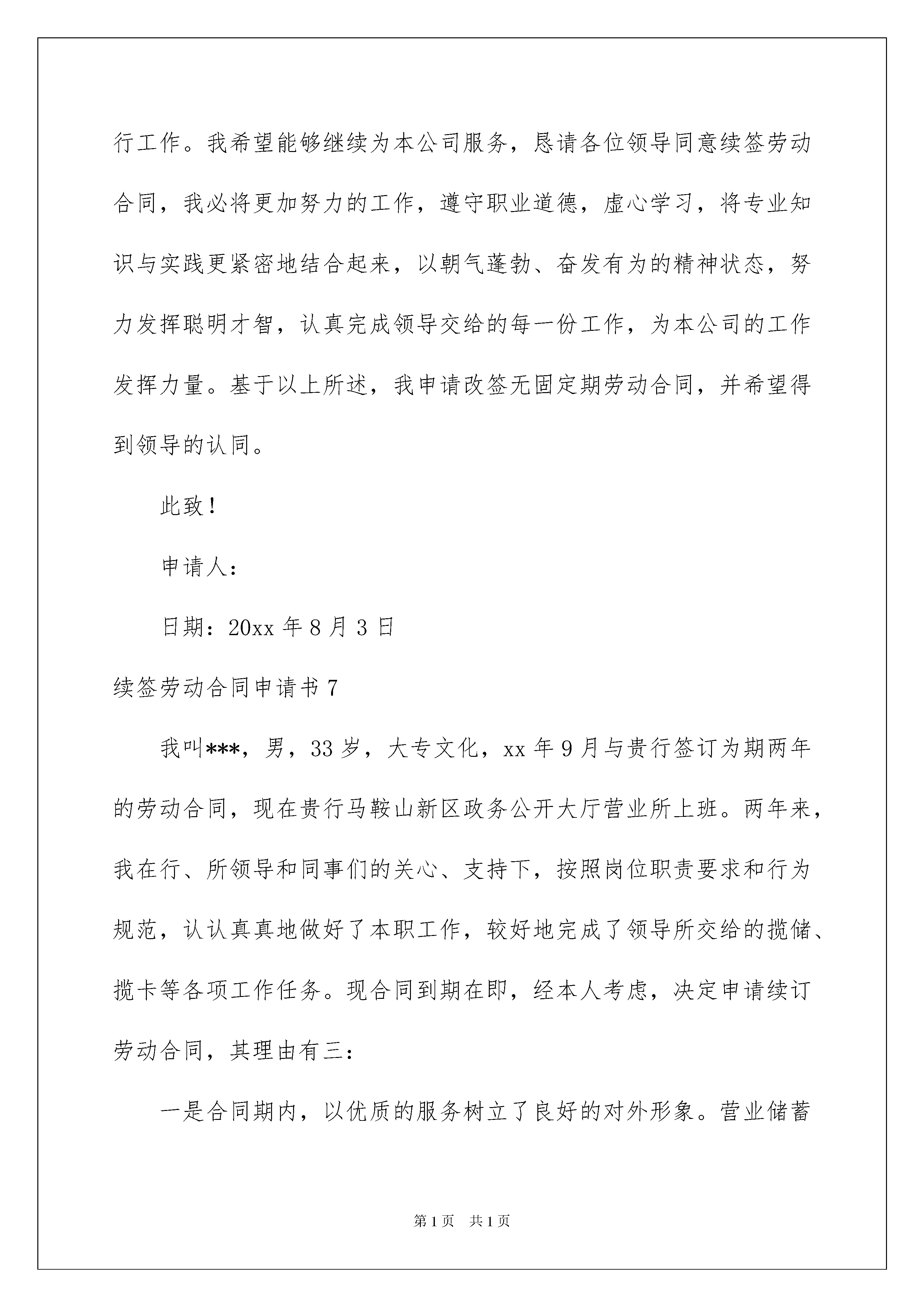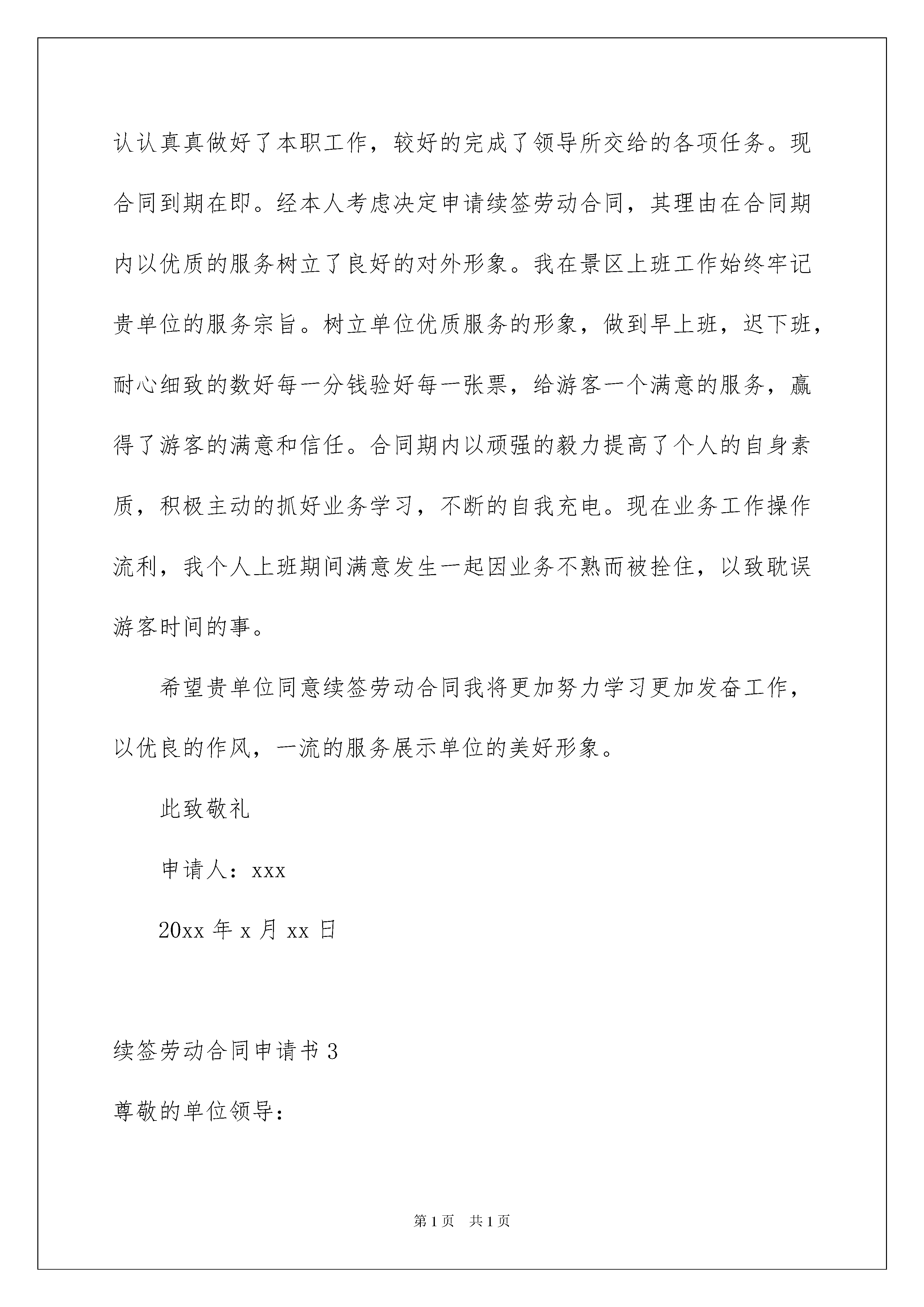 2022劳动合同续签申请书劳动合同续签申请书集合15篇在人们愈发重视契约的社会中关于合同的利益纠纷越来越多合同是对双方的保障又是一种约束。那么大家知道合同的格式吗?以下是我细心整理的劳动合同续签申请书仅供参考希望能够帮