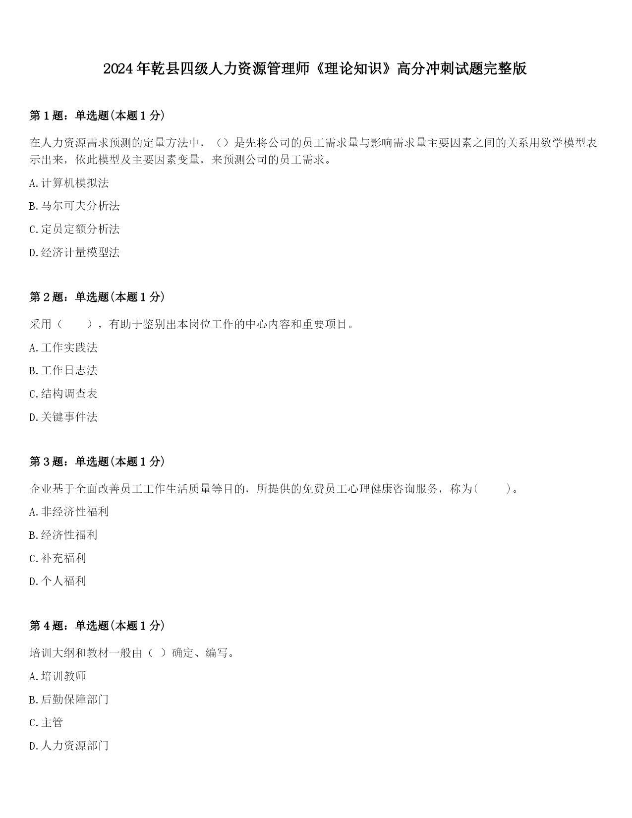 2024年乾县四级人力资源管理师《理论知识》高分冲刺试题完整版.docx