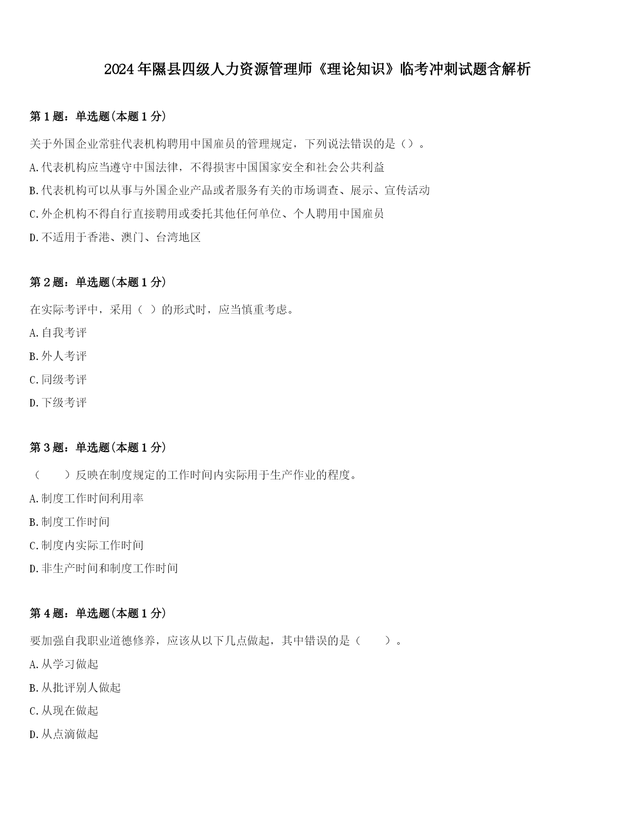 2024年隰县四级人力资源管理师《理论知识》临考冲刺试题含解析.docx