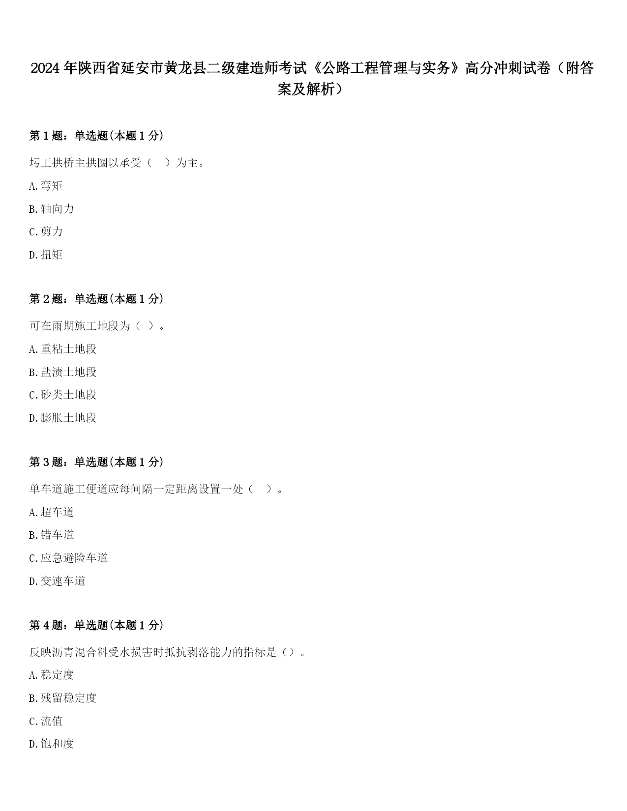 2024年陕西省延安市黄龙县二级建造师考试《公路工程管理与实务》高分冲刺试卷及答案.docx