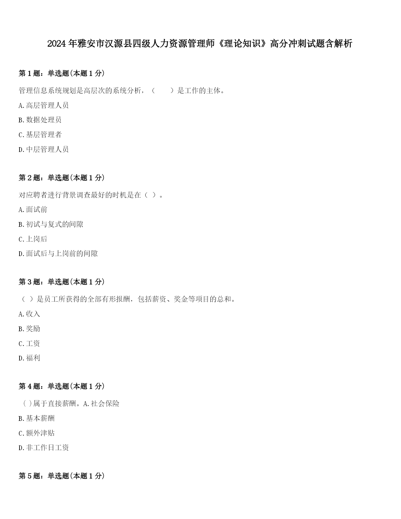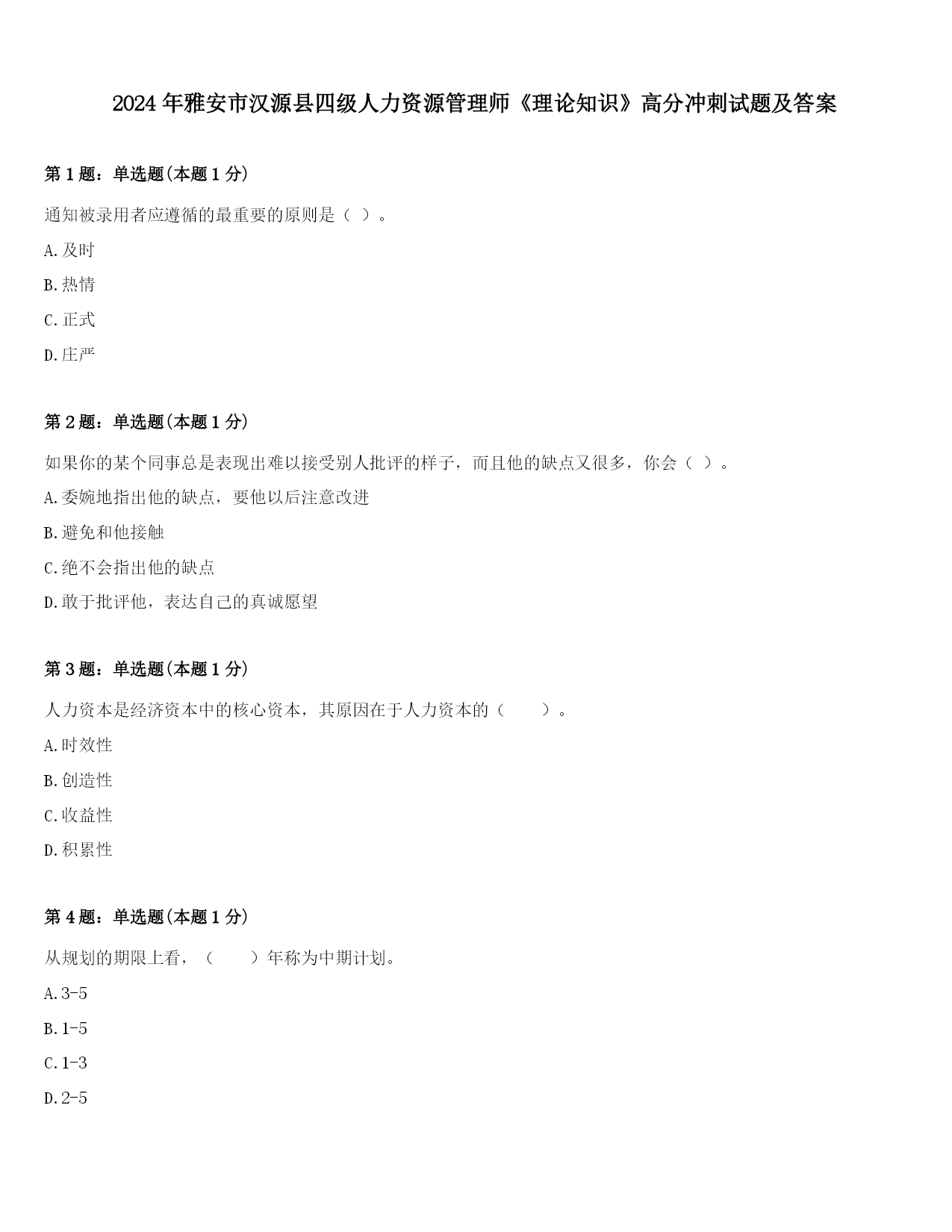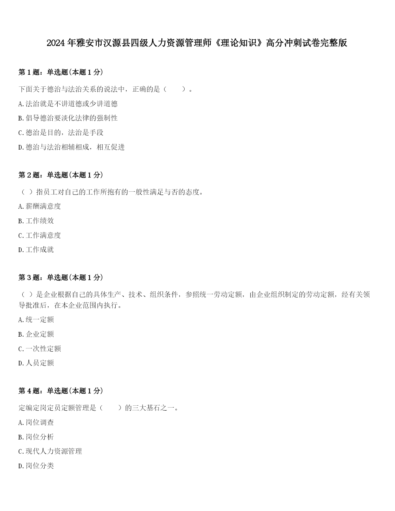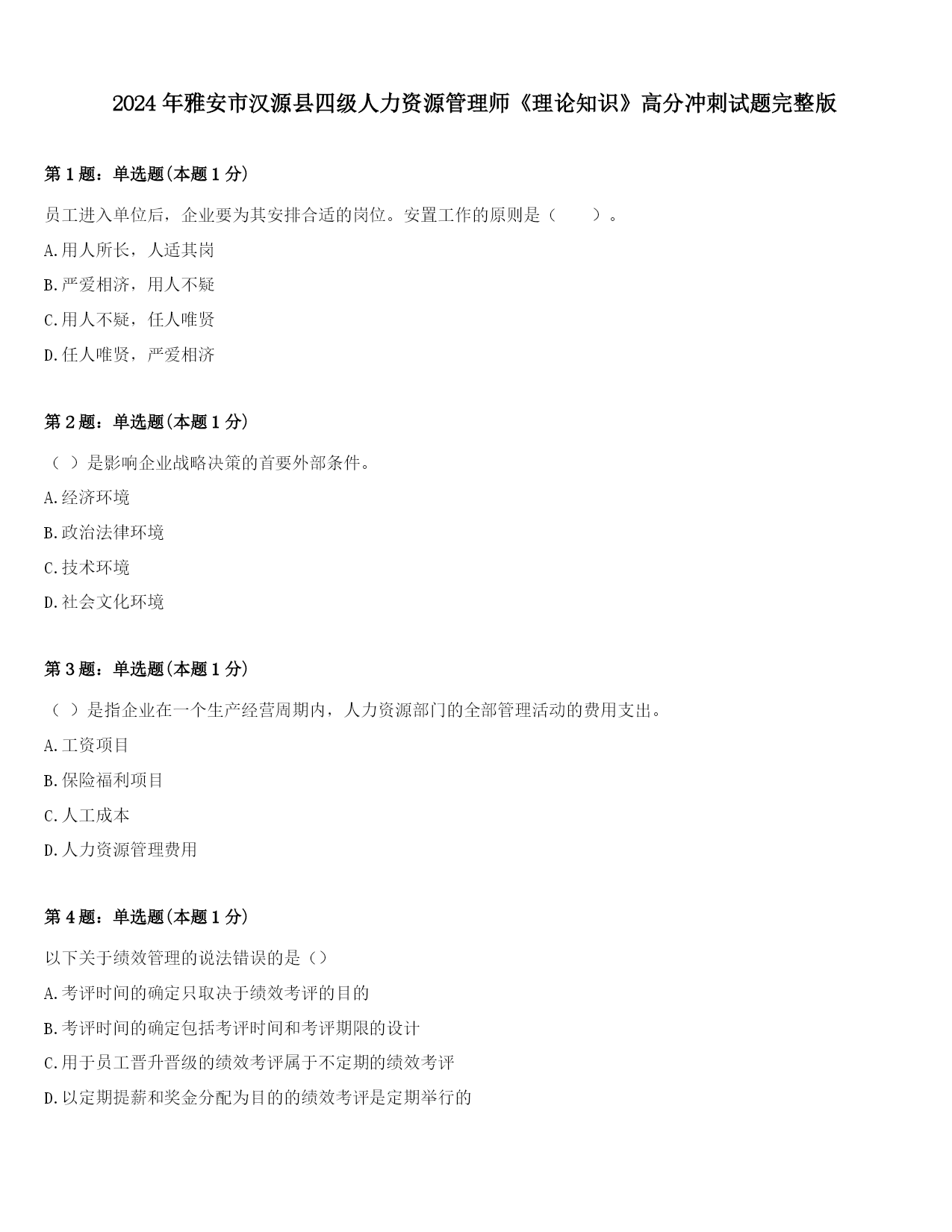 2024年雅安市汉源县四级人力资源管理师《理论知识》高分冲刺试题完整版.docx