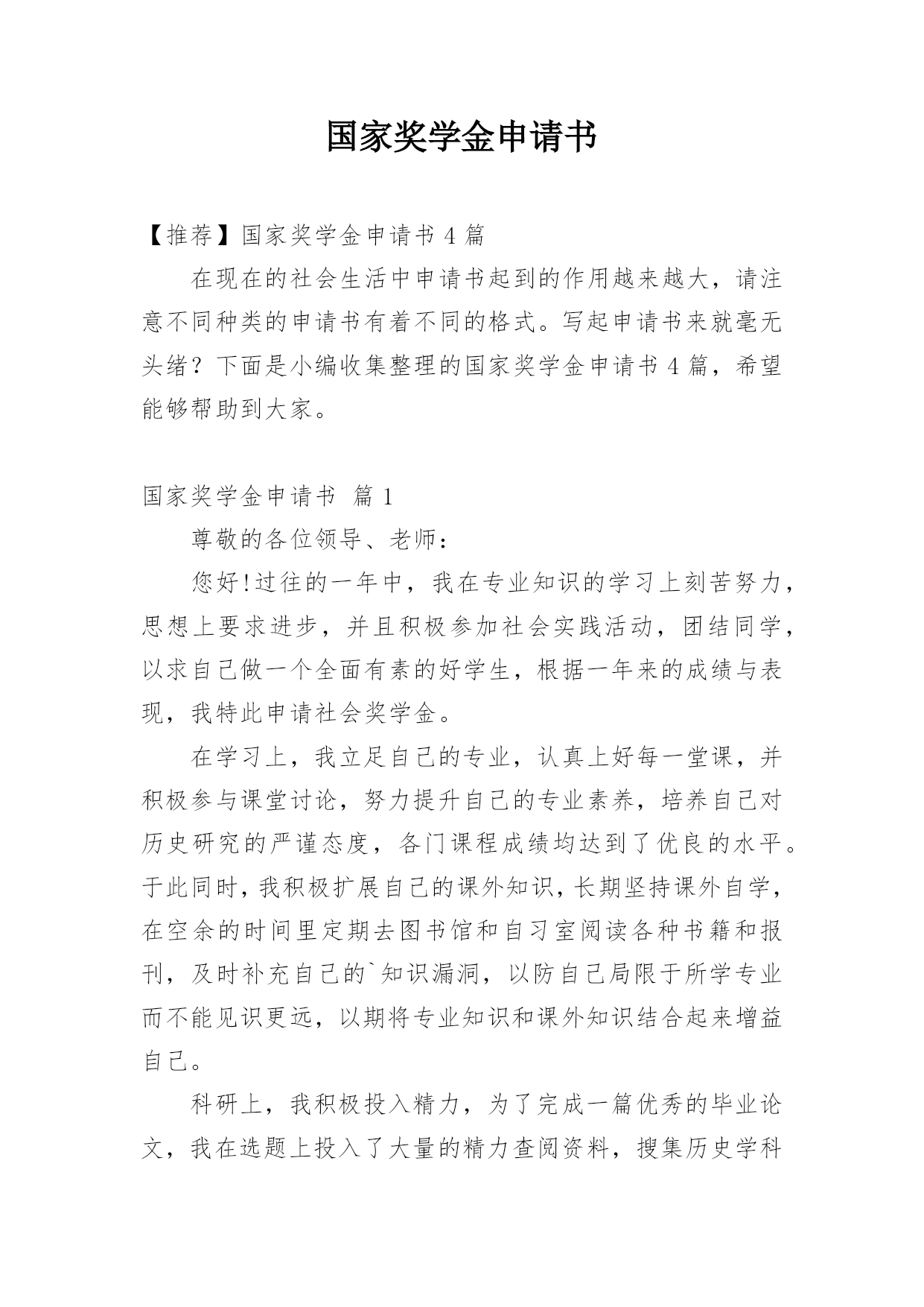 国家奖学金申请书【优秀】国家奖学金申请书范文在人们物质精神需求不断增长的今天,申请书出现的次数越来越多,不同的使用场景有不同的申请书。那么大家知道正规的申请书怎么写吗?下面是小编整理的国家奖学金申请书范文,希望能够帮助到大家。国家奖学金申请书范文篇1尊敬的校领导:您好!我是xx学院高职xx系xx电子商务x班的xx,我家住在xx省xx县的一个贫困的小山村里。从一进大学开始,我一直想的是要好好学习,说实话,我最主要的目的不是为我自己,我现在能站在这里而且来到工商学院,应为我爸,所以我来了,而且我只是一个贫困山