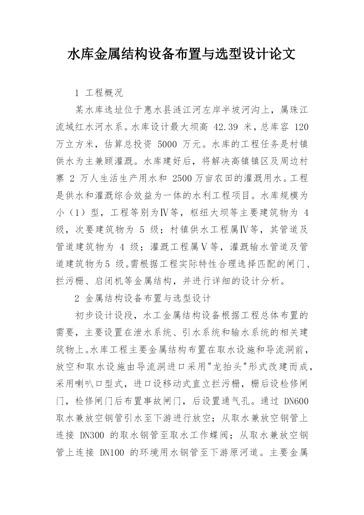 水库金属结构设备布置与选型设计论文[大全5篇].docx