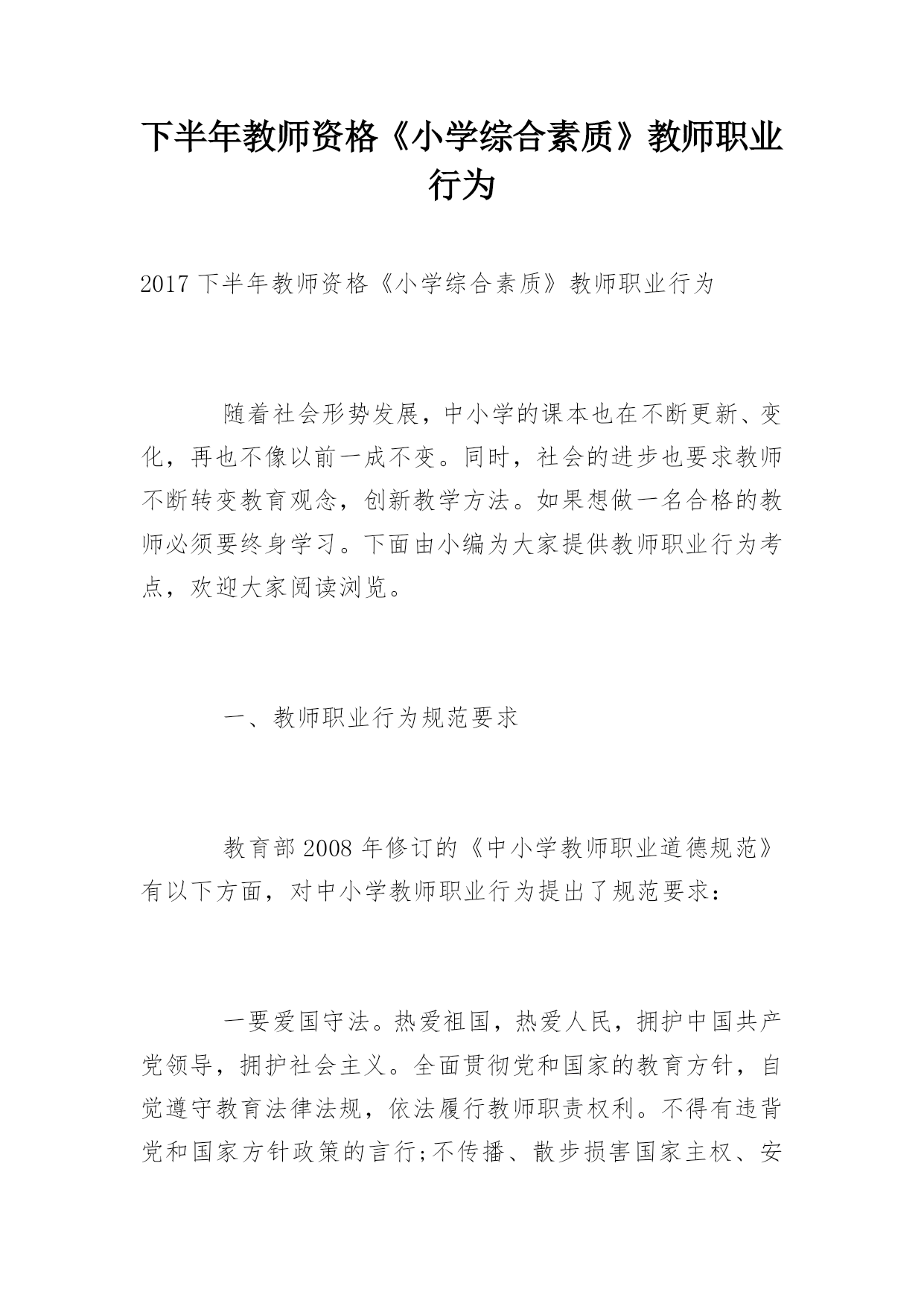 下半年教师资格证《小学综合素质》教师职业行为.docx