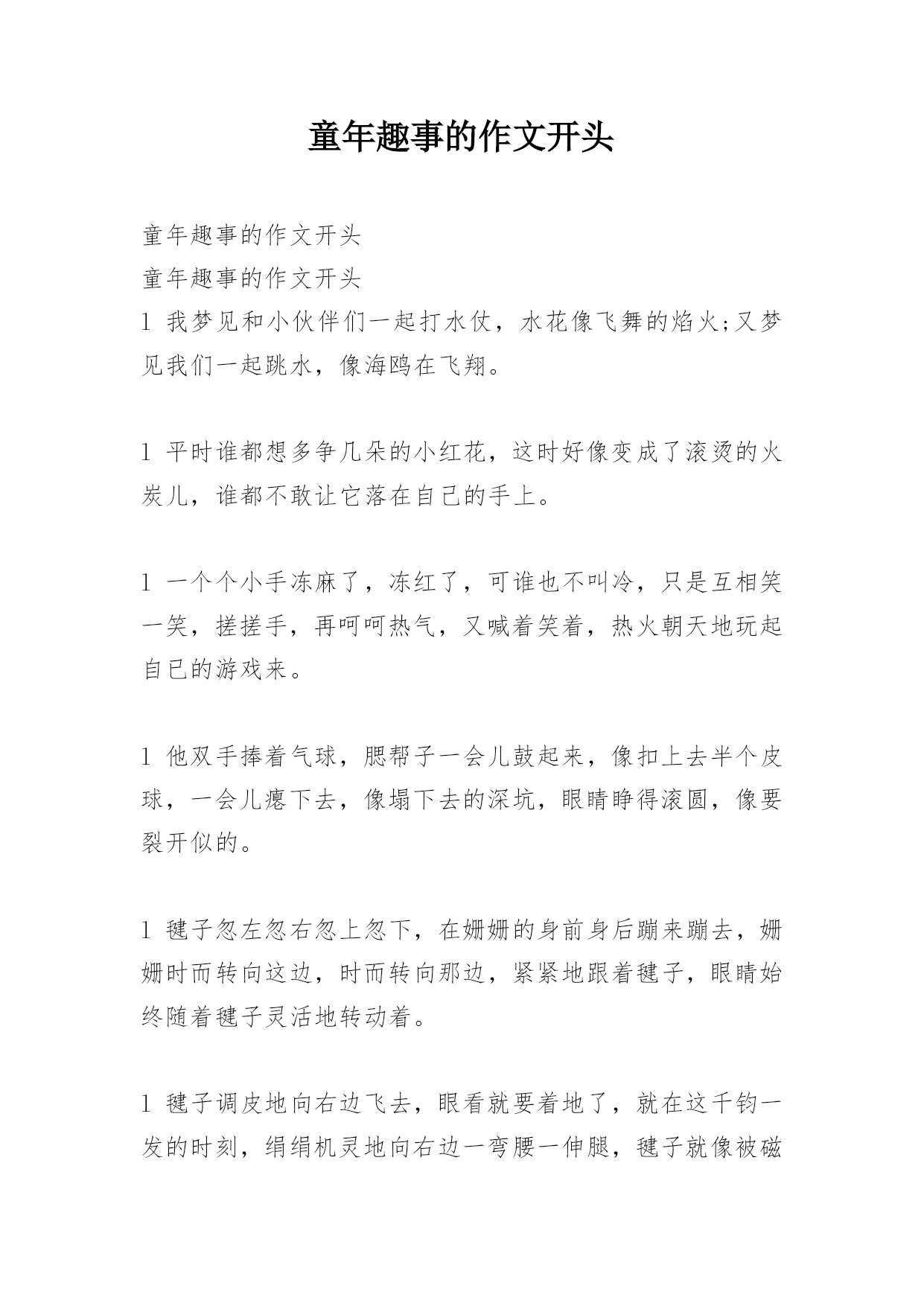 童年趣事作文开头.docx