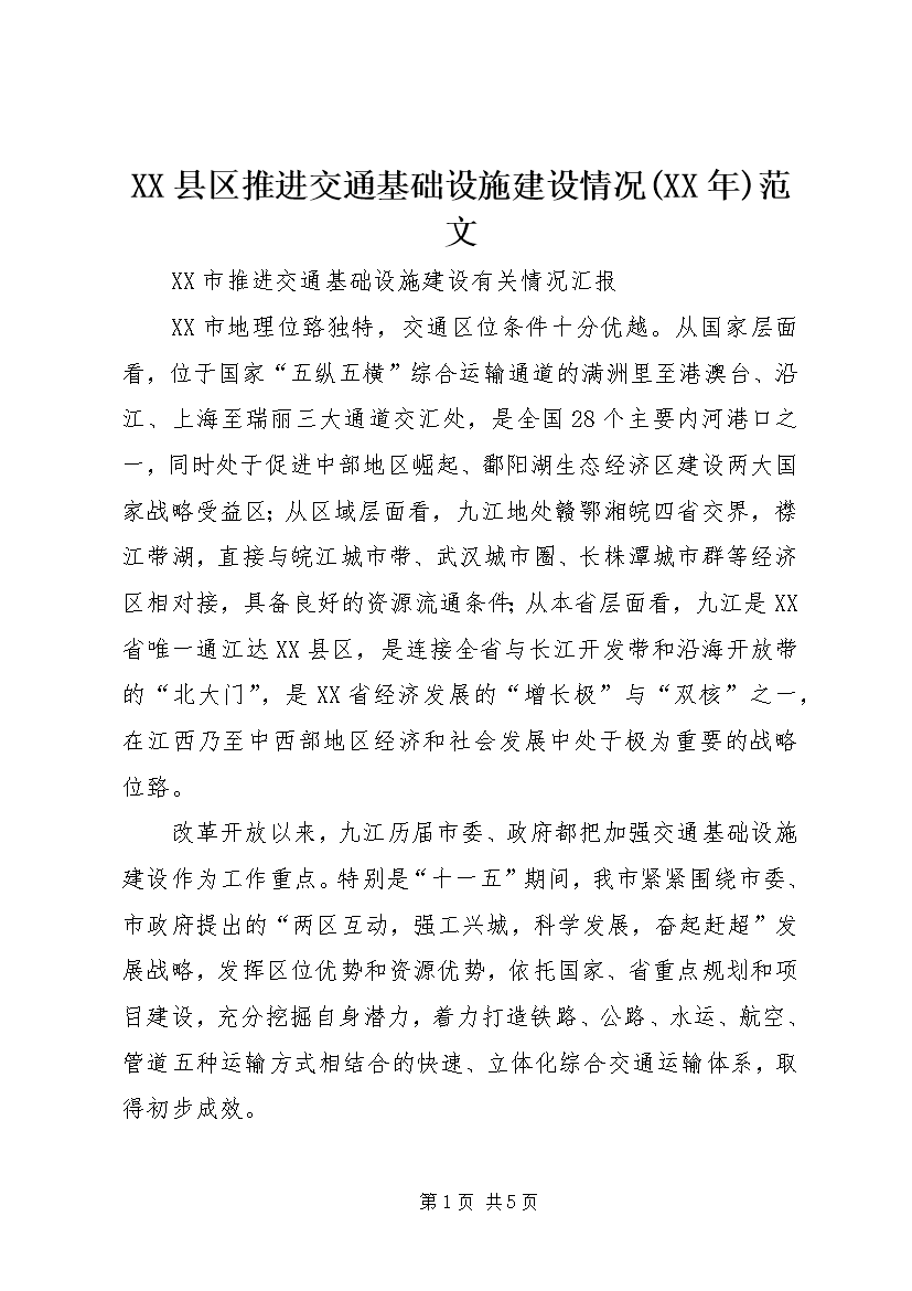 XX县区推进交通基础设施建设情况(某年)范文_.docx