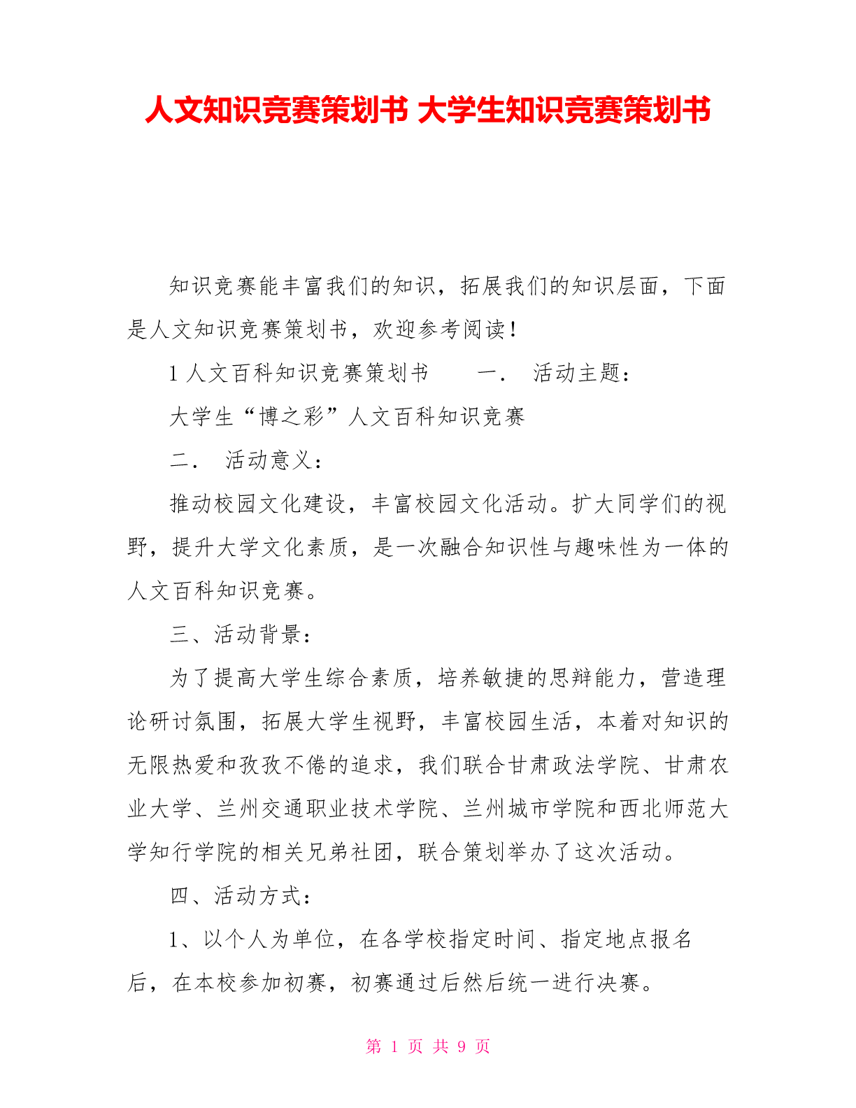人文知识竞赛策划书大学生知识竞赛策划书.pdf
