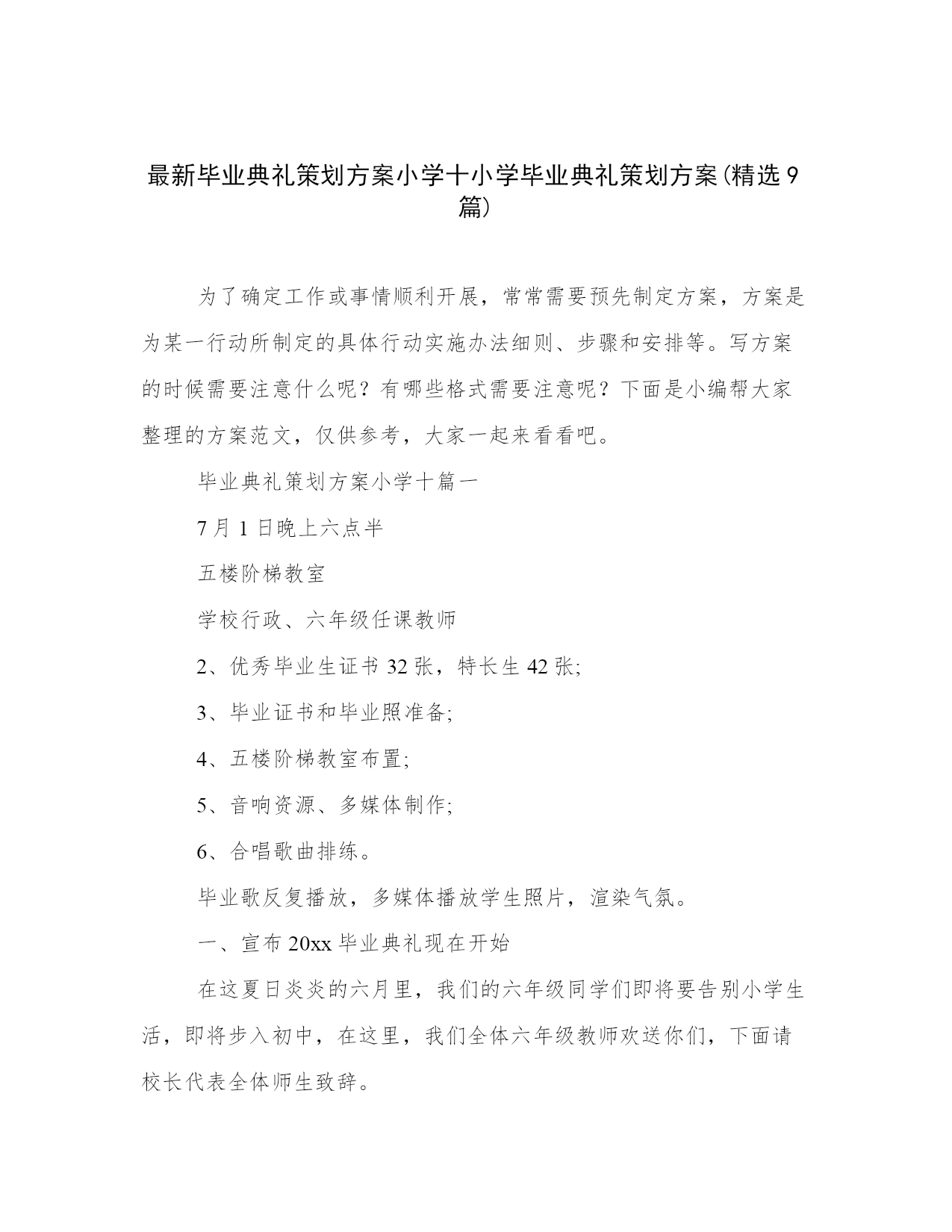 最新毕业典礼策划方案小学十小学毕业典礼策划方案(精选9篇).docx