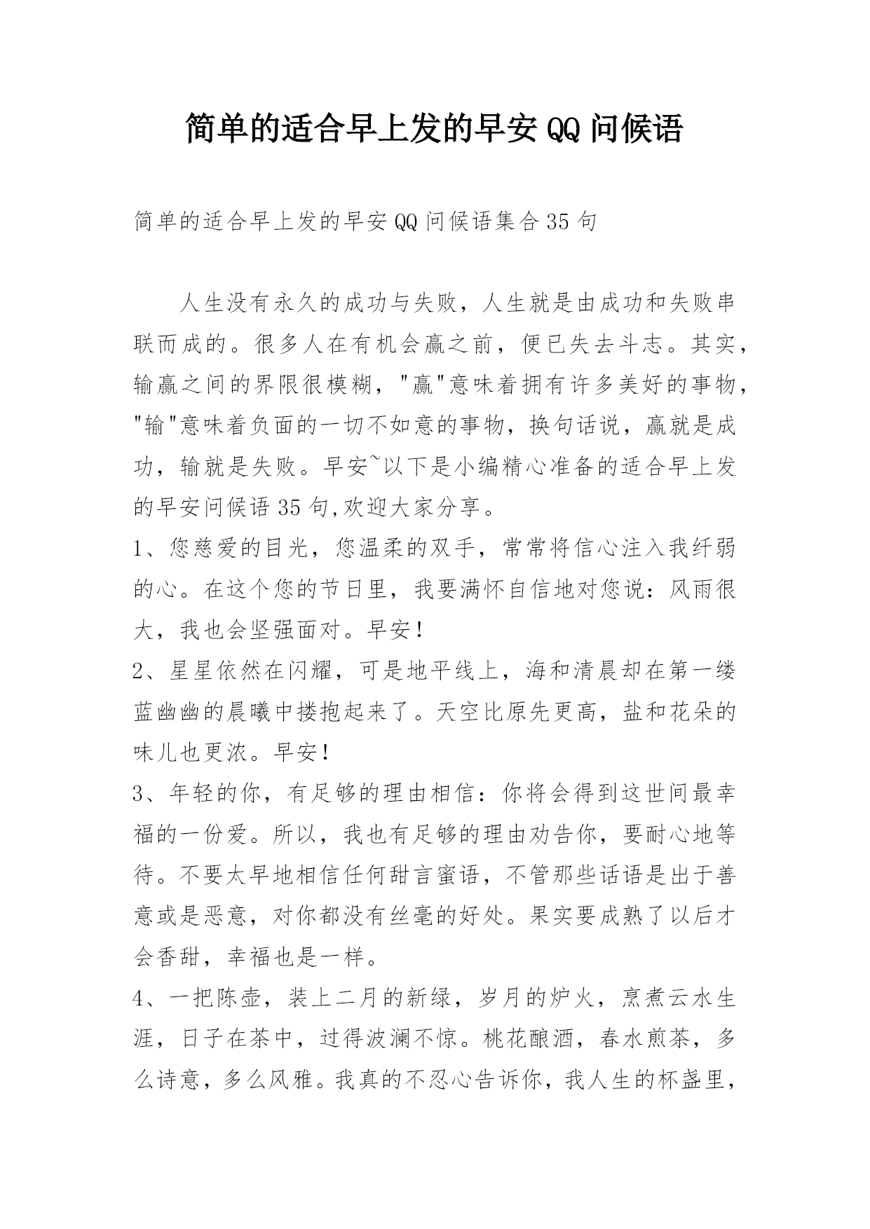 简单的适合早上发的早安QQ问候语编辑精选范文.docx