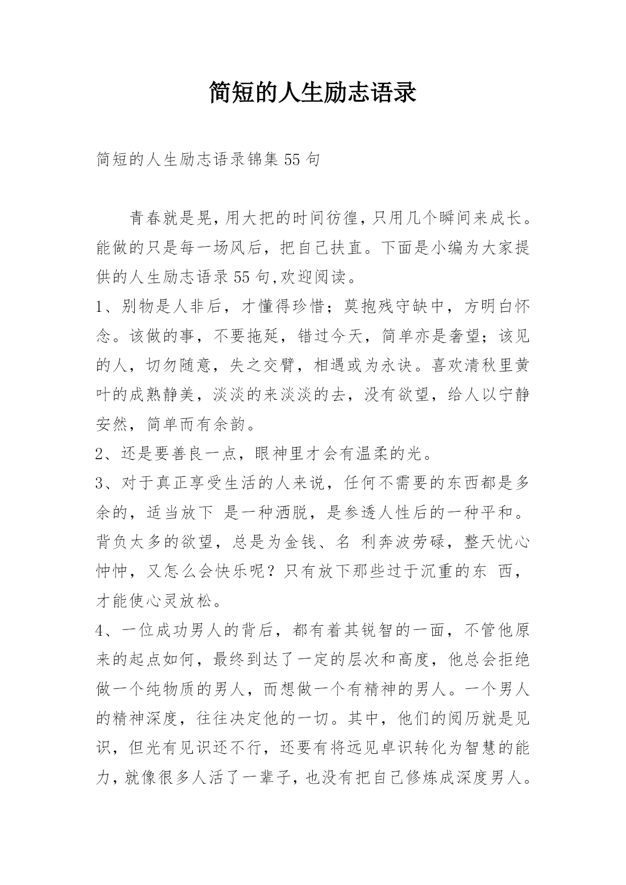 简短的人生励志语录最新整理范文模板.docx
