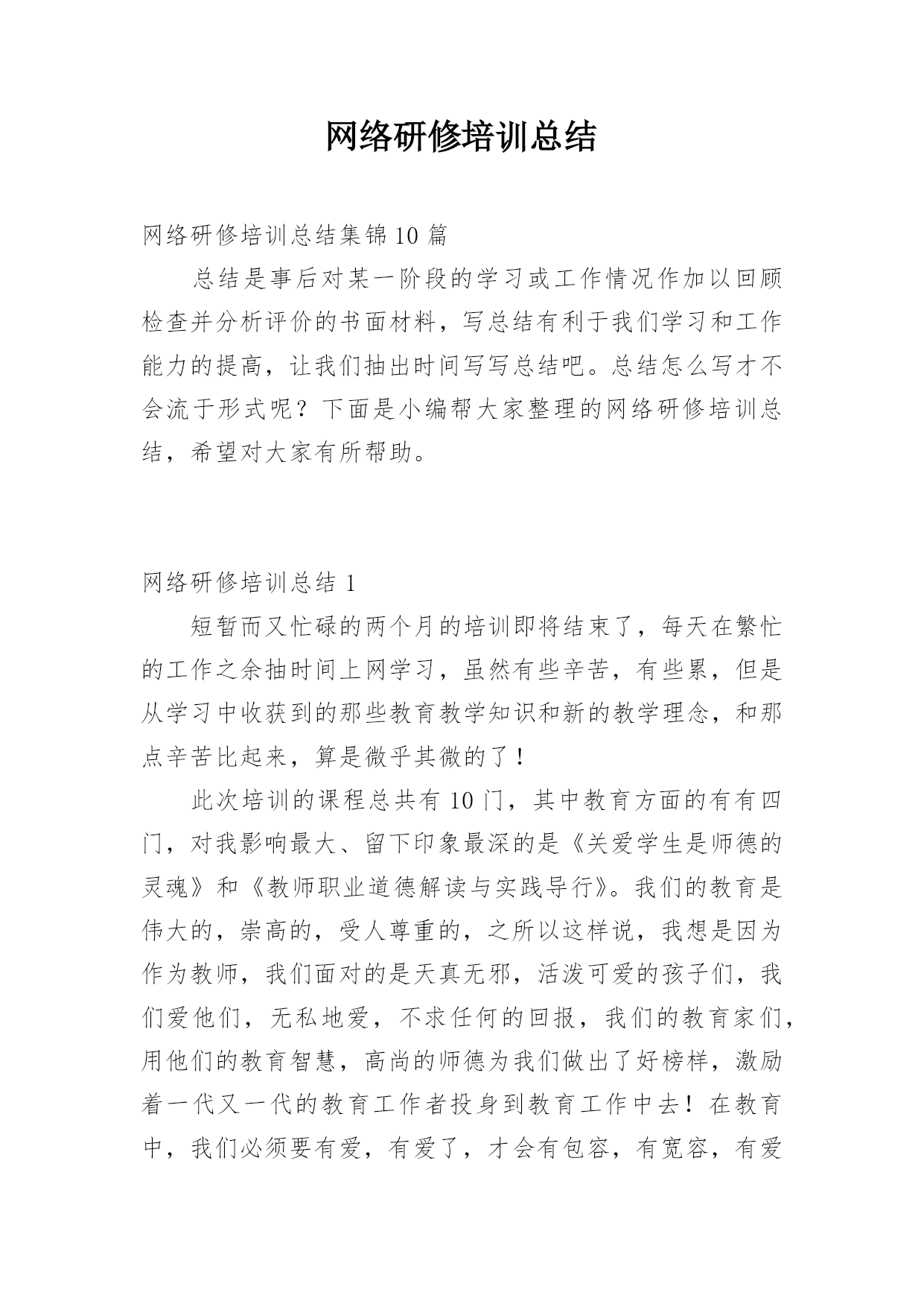 网络研修培训总结网络研修培训总结集锦10篇总结是事后对某一阶段的学习或工作情况作加以回顾检查并分析评价的书面材料,写总结有利于我们学习和工作能力的提高,让我们抽出时间写写总结吧。总结怎么写才不会流于形式呢?下面是小编帮大家整理的网络研修培训总结,希望对大家有所帮助。网络研修培训总结1短暂而又忙碌的两个月的培训即将结束了,每天在繁忙的工作之余抽时间上网学习,虽然有些辛苦,有些累,但是从学习中收获到的那些教育教学知识和新的教学理念,和那点辛苦比起来,算是微乎其微的了!此次培训的课程总共有10门,其中教育方面的