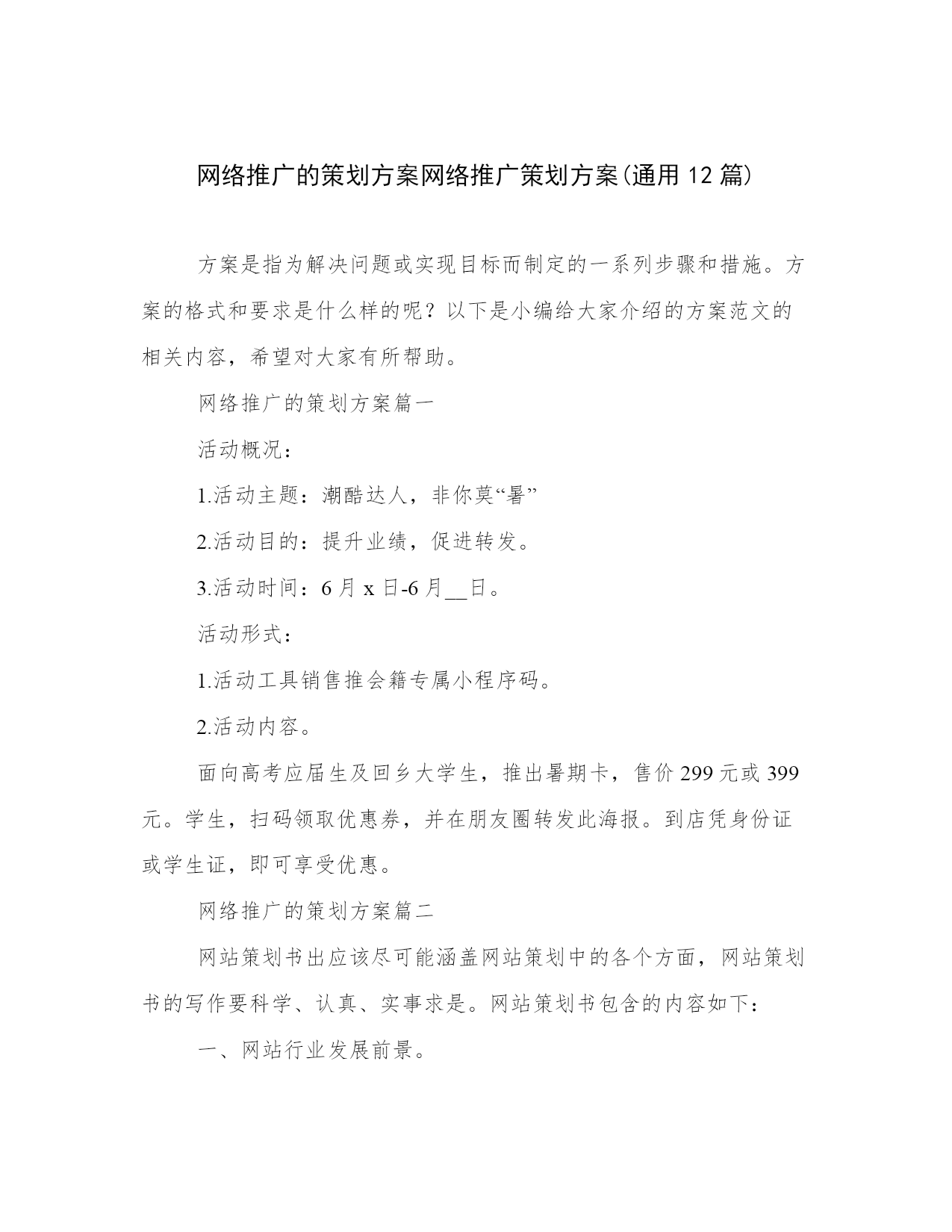网络推广的策划方案网络推广策划方案(通用12篇).docx