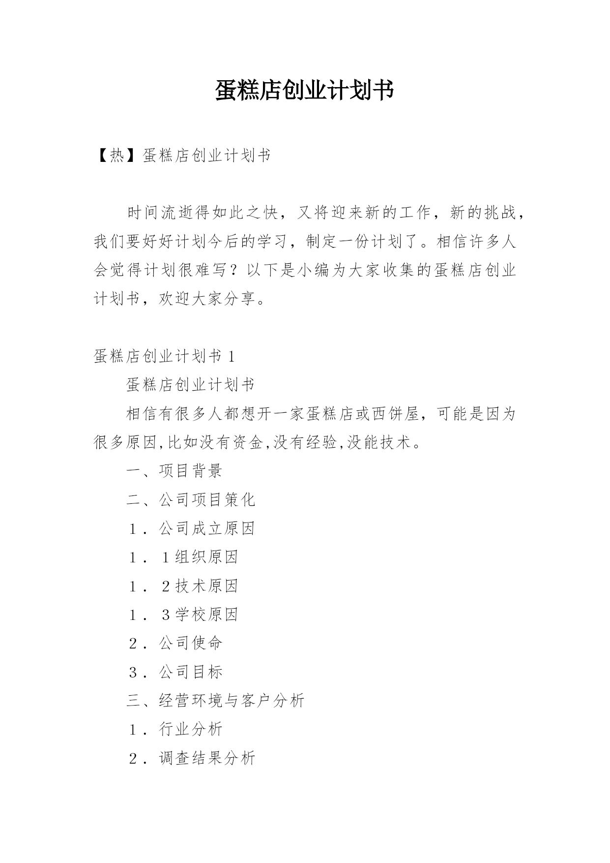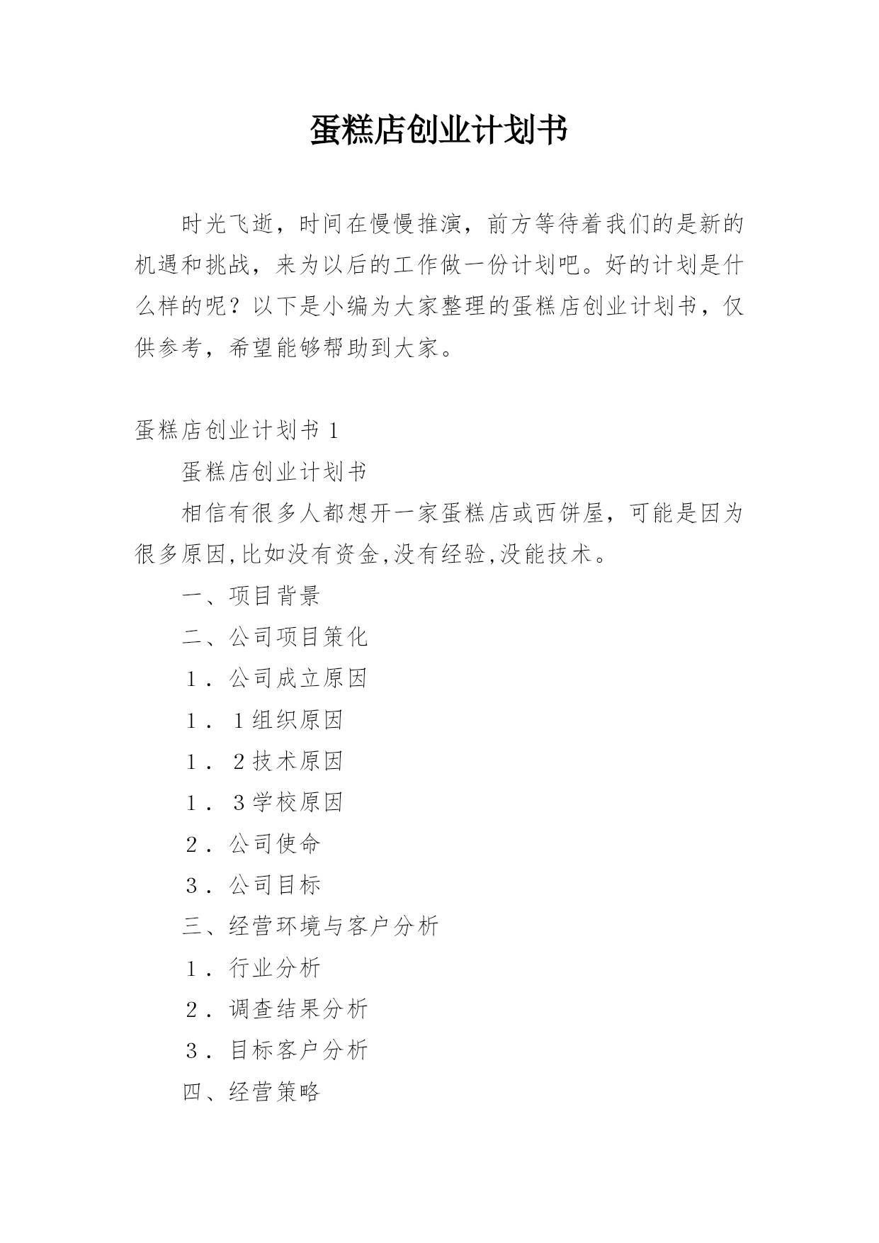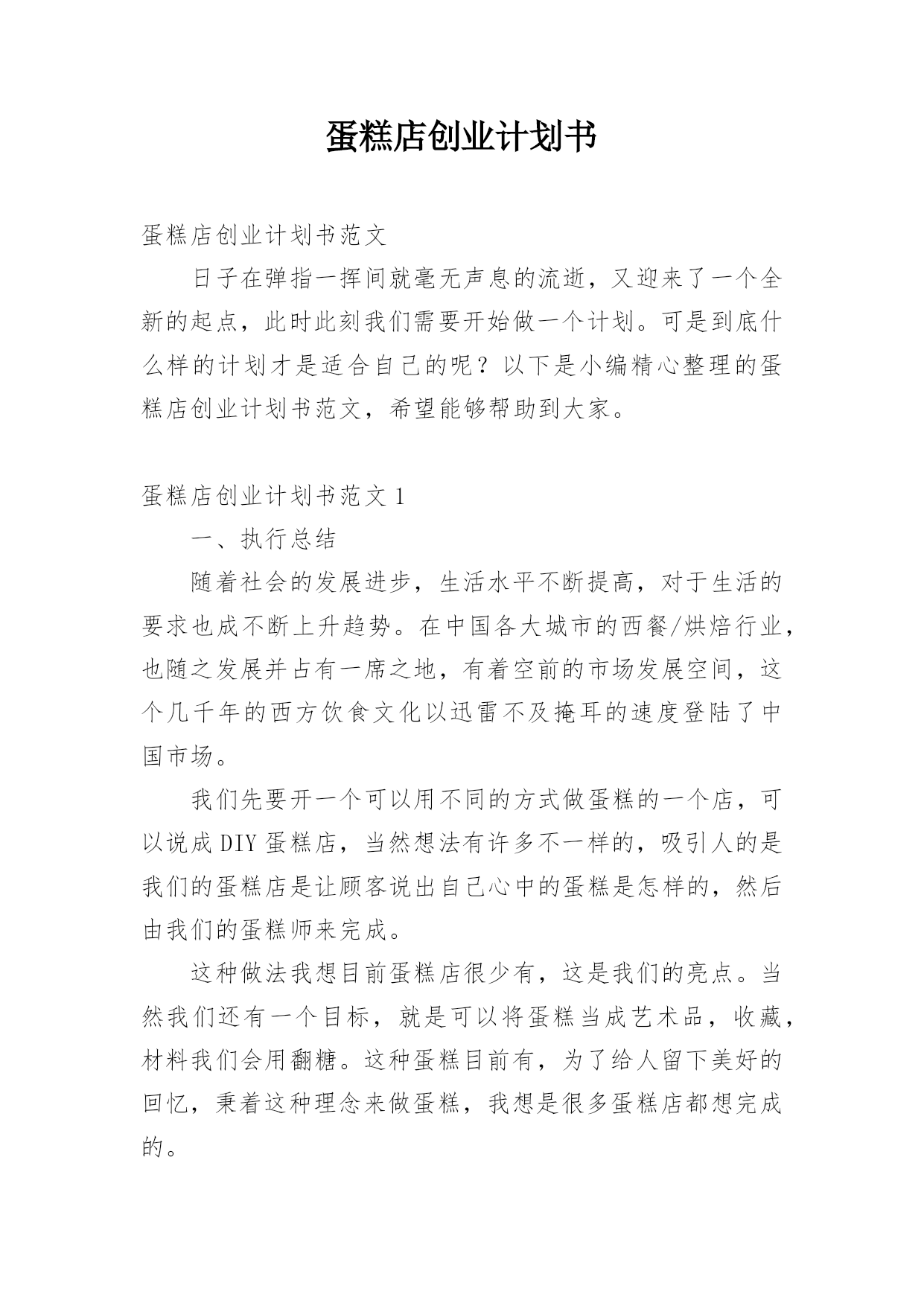 蛋糕店创业计划书蛋糕店创业计划书【精】时间过得太快,让人猝不及防,我们又将接触新的知识,学习新的技能,积累新的经验,是时候写一份详细的计划了。相信大家又在为写计划犯愁了吧?下面是小编收集整理的蛋糕店创业计划书,欢迎大家分享。蛋糕店创业计划书1什么是特色专业冷饮店呢?冷饮店是经营清凉饮料饮品及食品的场所。冷藏饭店中也有冰冻淇淋屋、果汁店、水果吧等别称,名称虽不同,经营范围都差不多。新型特色专业冷饮店应具备以下特点:1、必须要有食品或饮料供应2、有令人放松精神的环境或气氛。3、有固定场所,能满足顾客差异性的需