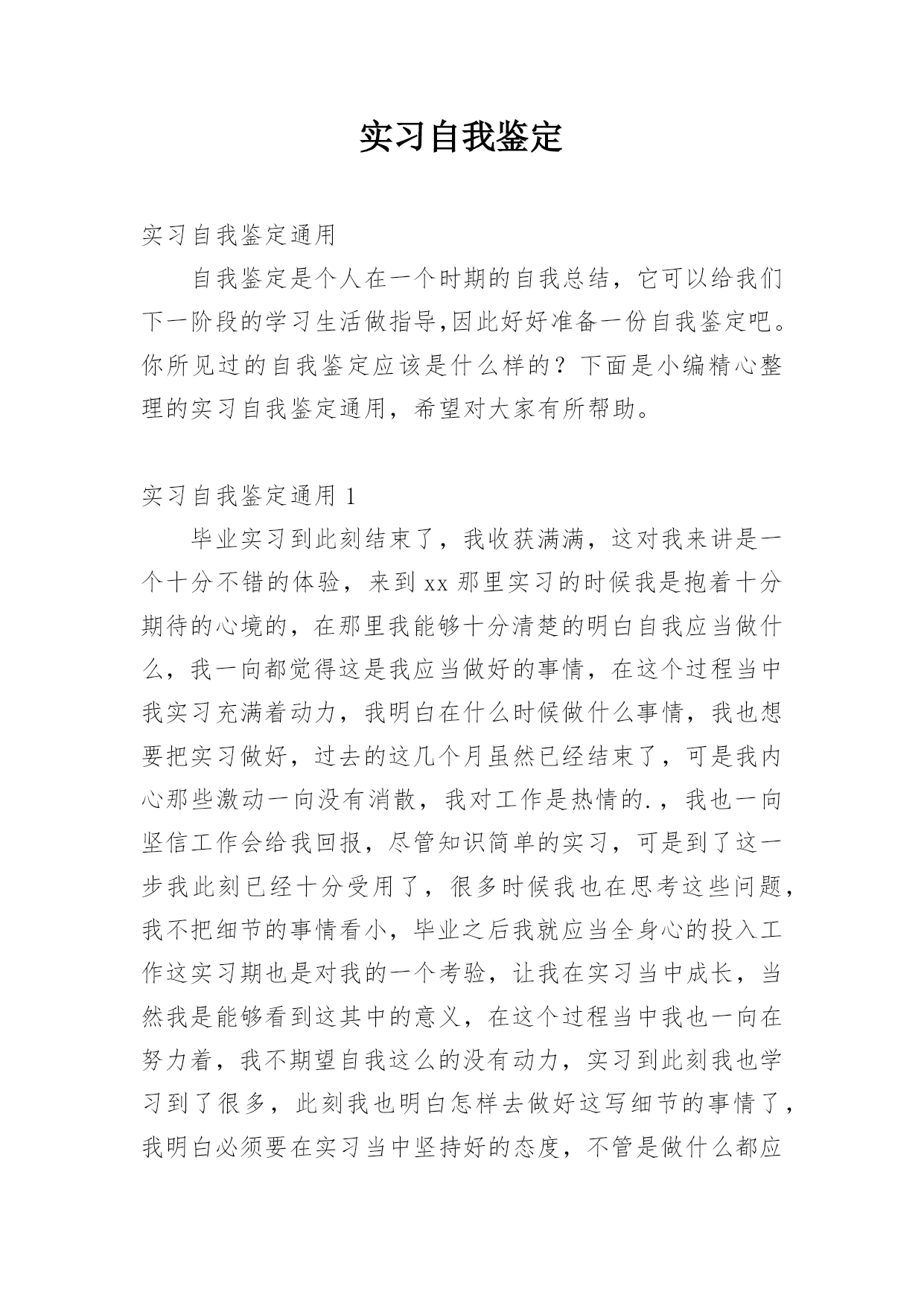 实习自我鉴定实习自我鉴定自我鉴定是对自己过去某一阶段的学习或工作进行分析,并作出相应的总结,自我鉴定可以使我们更加明确目标,让我们一起认真地写一份自我鉴定吧。那么自我鉴定应该包括什么内容呢?下面是小编整理的实习自我鉴定,希望对大家有所帮助。实习自我鉴定1为期x个月的实习生活转眼已经结束,时间过得真快。实习是我们将所学的理论知识结合临床,迈向临床的第一步;在实习所学的知识让我受益匪浅并将受用终生。下面实习期间的表现进行自我鉴定:按学校和医院的要求和规定,我分别到了许多不同科室实习。在实习期间我严格遵守医院及