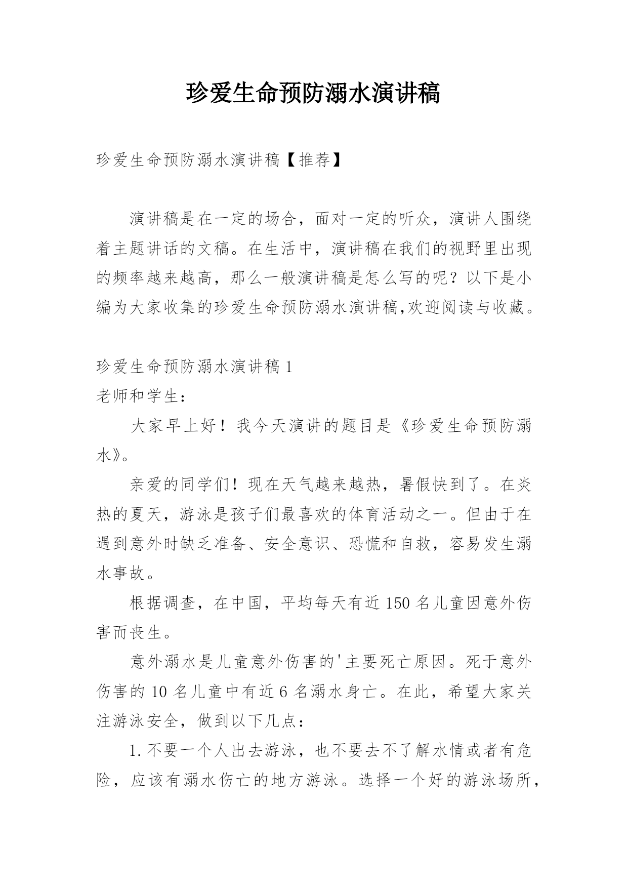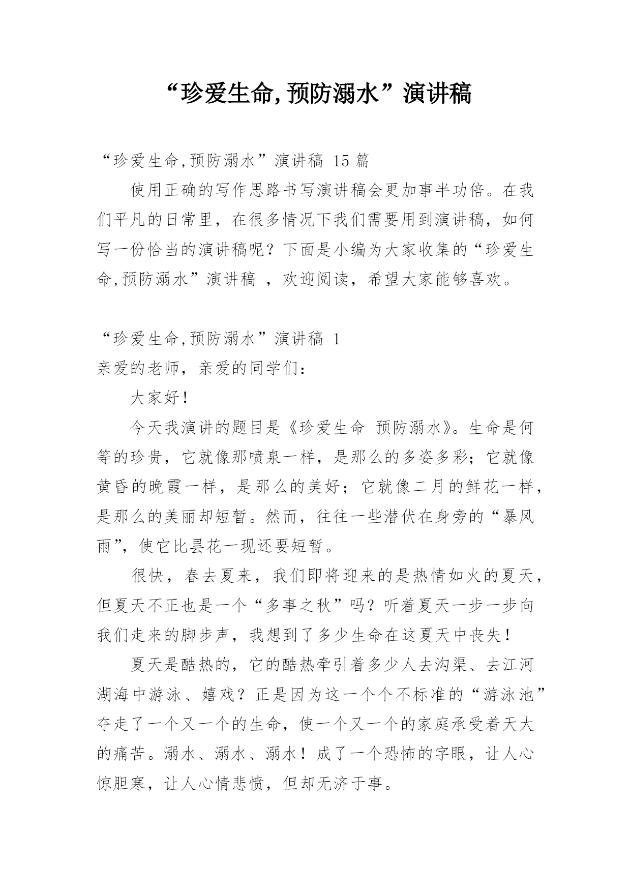 “珍爱生命,预防溺水”演讲稿精编.docx