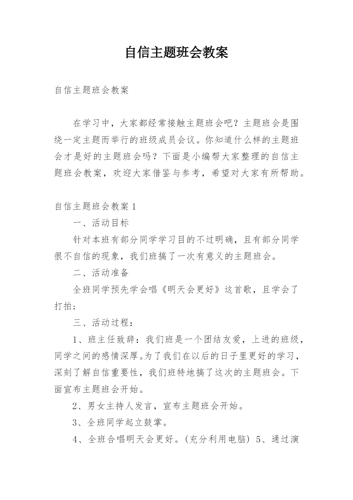 自信主题班会教案【编辑精选】.docx