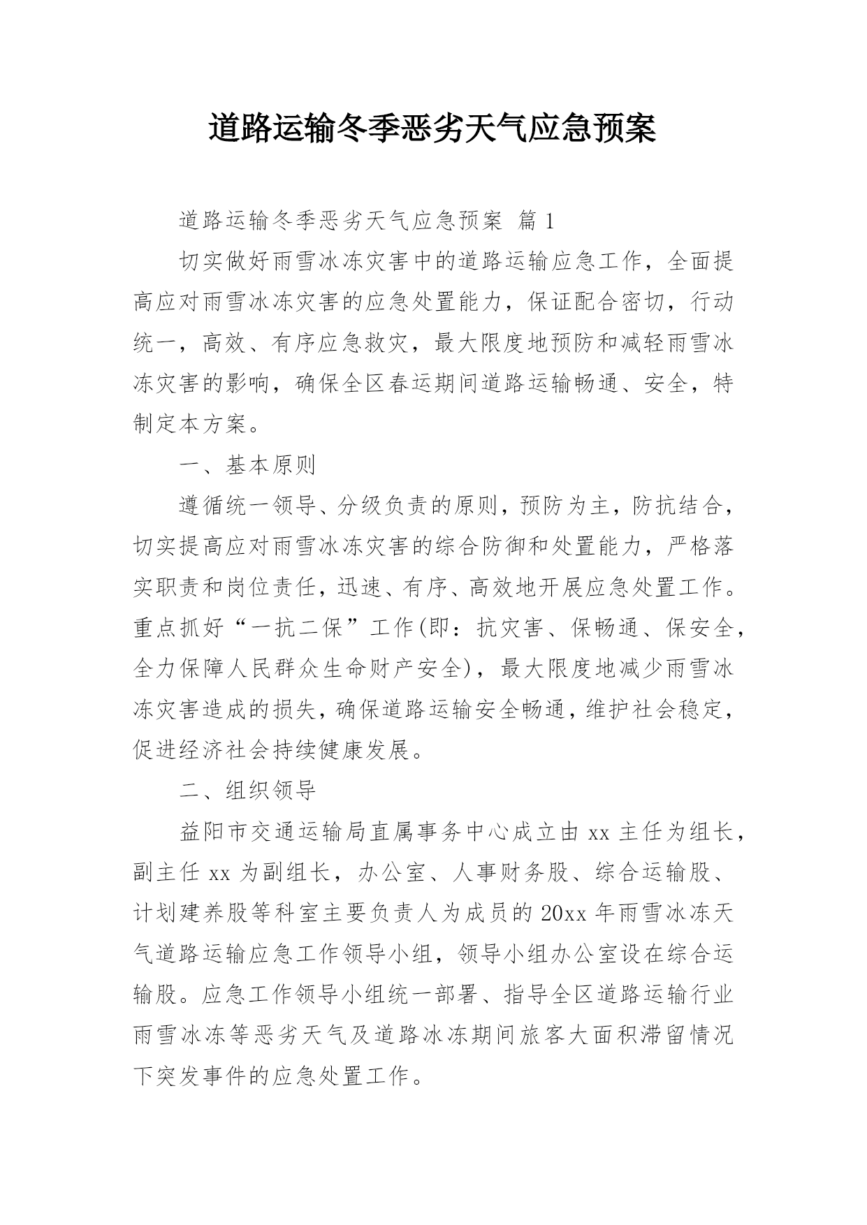 道路运输冬季恶劣天气应急预案.docx