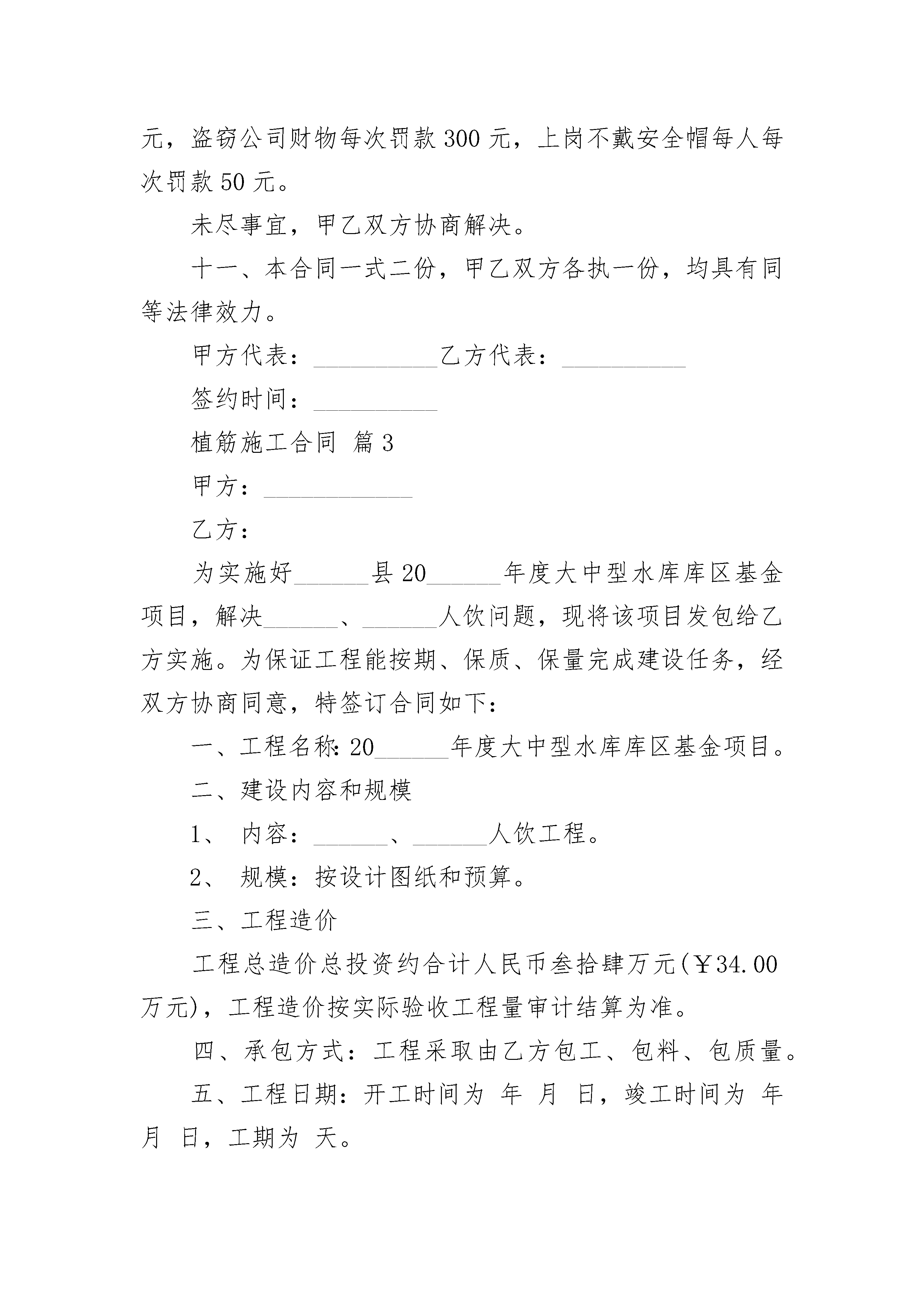 植筋施工合同植筋施工合同在人们愈发重视契约的社会中,人们运用到合同的场合不断增多,签订合同也是最有效的法律依据之一。你知道合同的主要内容是什么吗?以下是小编帮大家整理的植筋施工合同,供大家参考借鉴,希望可以帮助到有需要的朋友。植筋施工合同1甲方:乙方:惠州市华良建筑加固工程有限公司为明确甲乙双方责任,确保工程质量,按期完成本工程的施工任务。依照《中华人民共和国合同法》以及甲方的要求,经双方充分协商,达成以下协议,双方共同遵守。一、工程名称:二、工程地点:大亚湾西区三、承包范围:四、承包方式:包工、包料形式