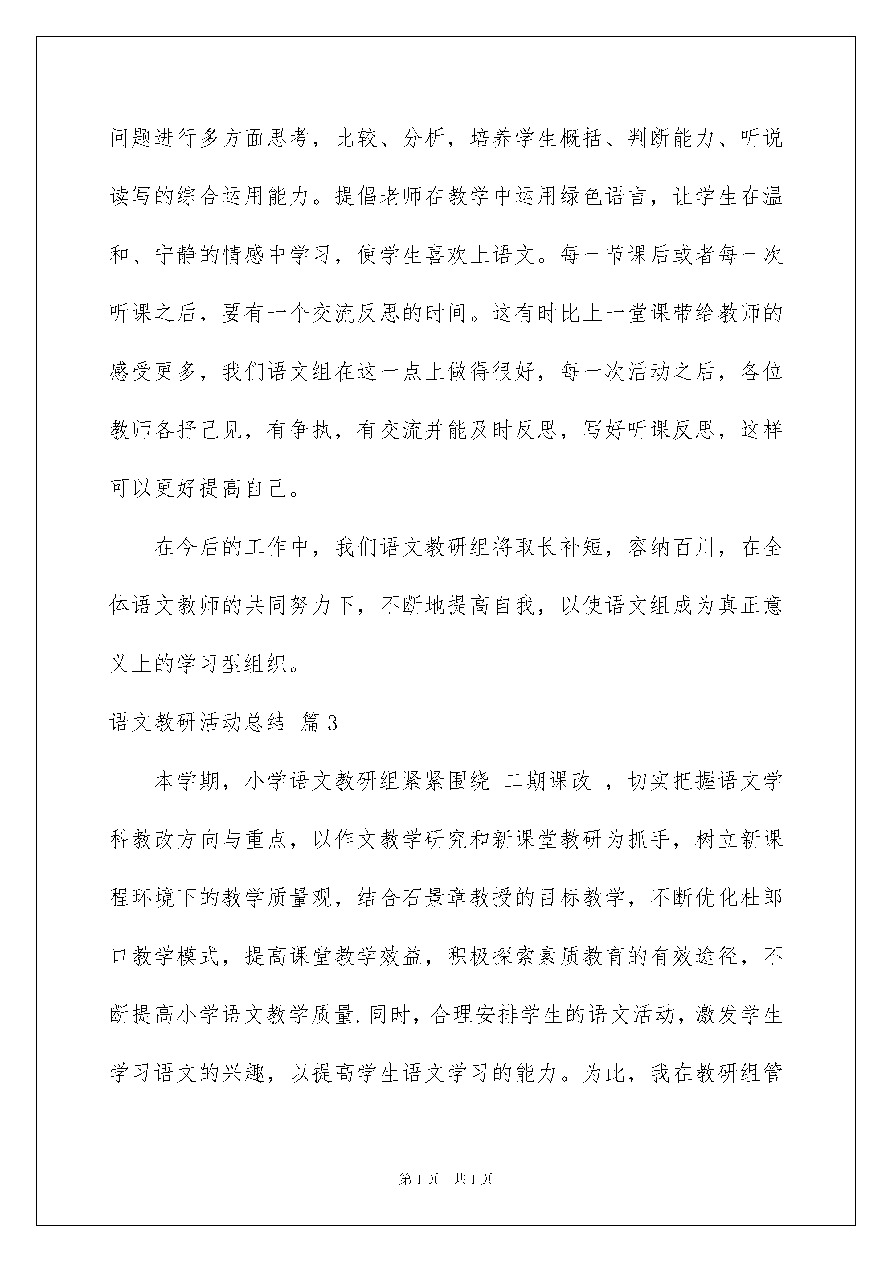 2022语文教研活动总结范文集合10篇语文教研活动总结范文集合10篇总结是事后对某一阶段的学习、工作或其完成情况加以回顾和分析的一种书面材料它可以明确下一步的工作方向少走弯路少犯错误提高工作效益快快来写一份总结吧。但是却发现不