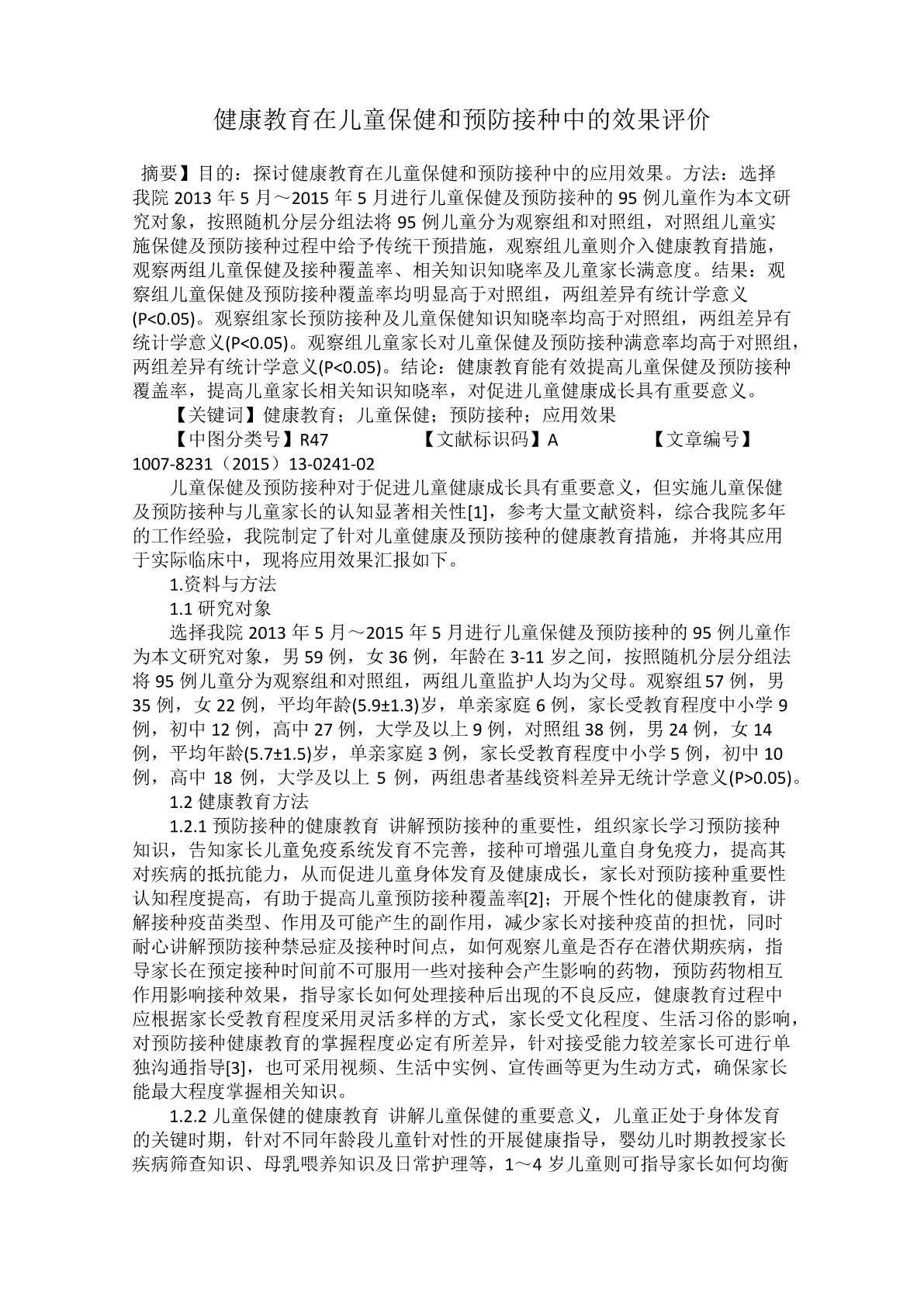 健康教育在儿童保健和预防接种中的效果评价.pdf