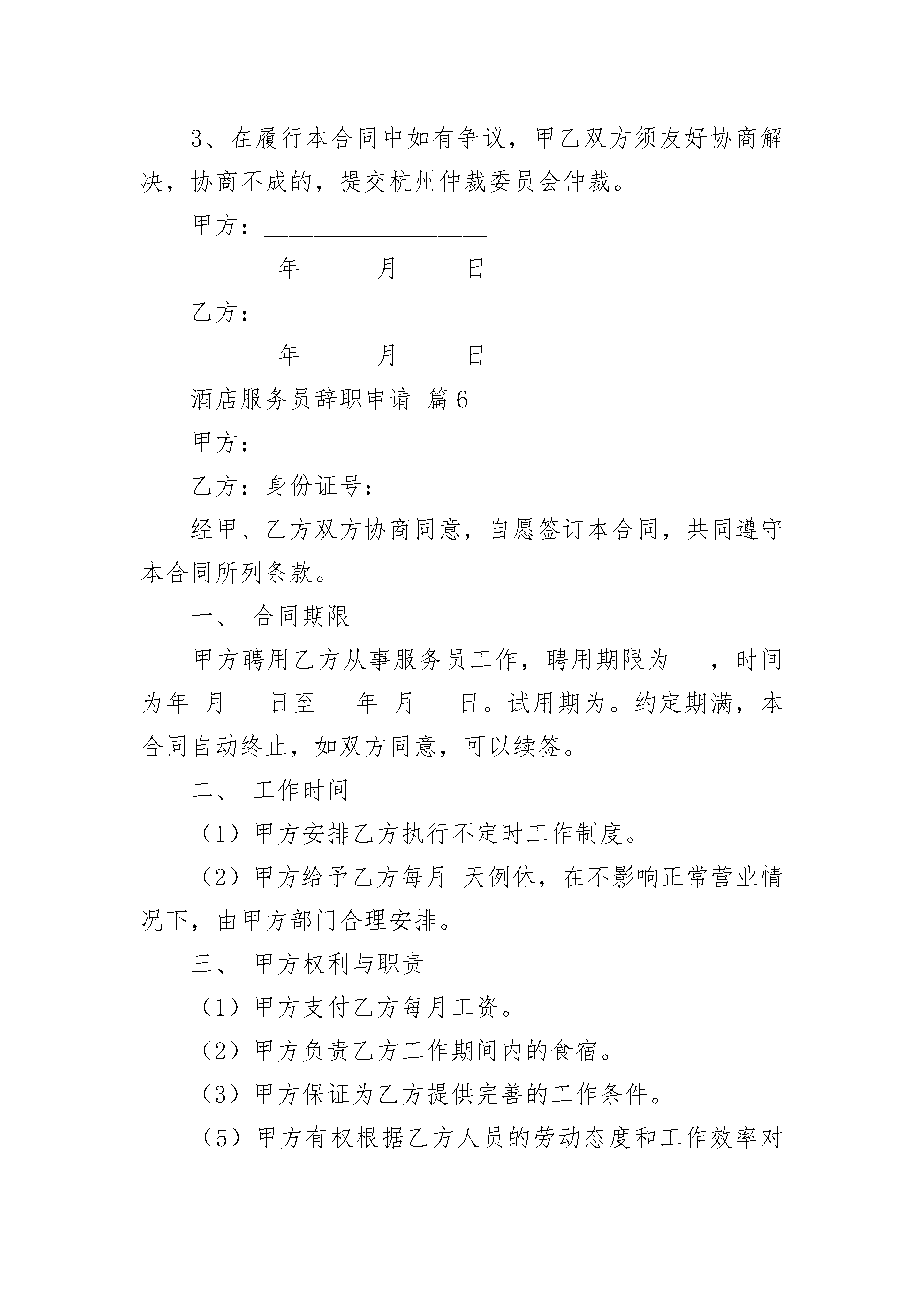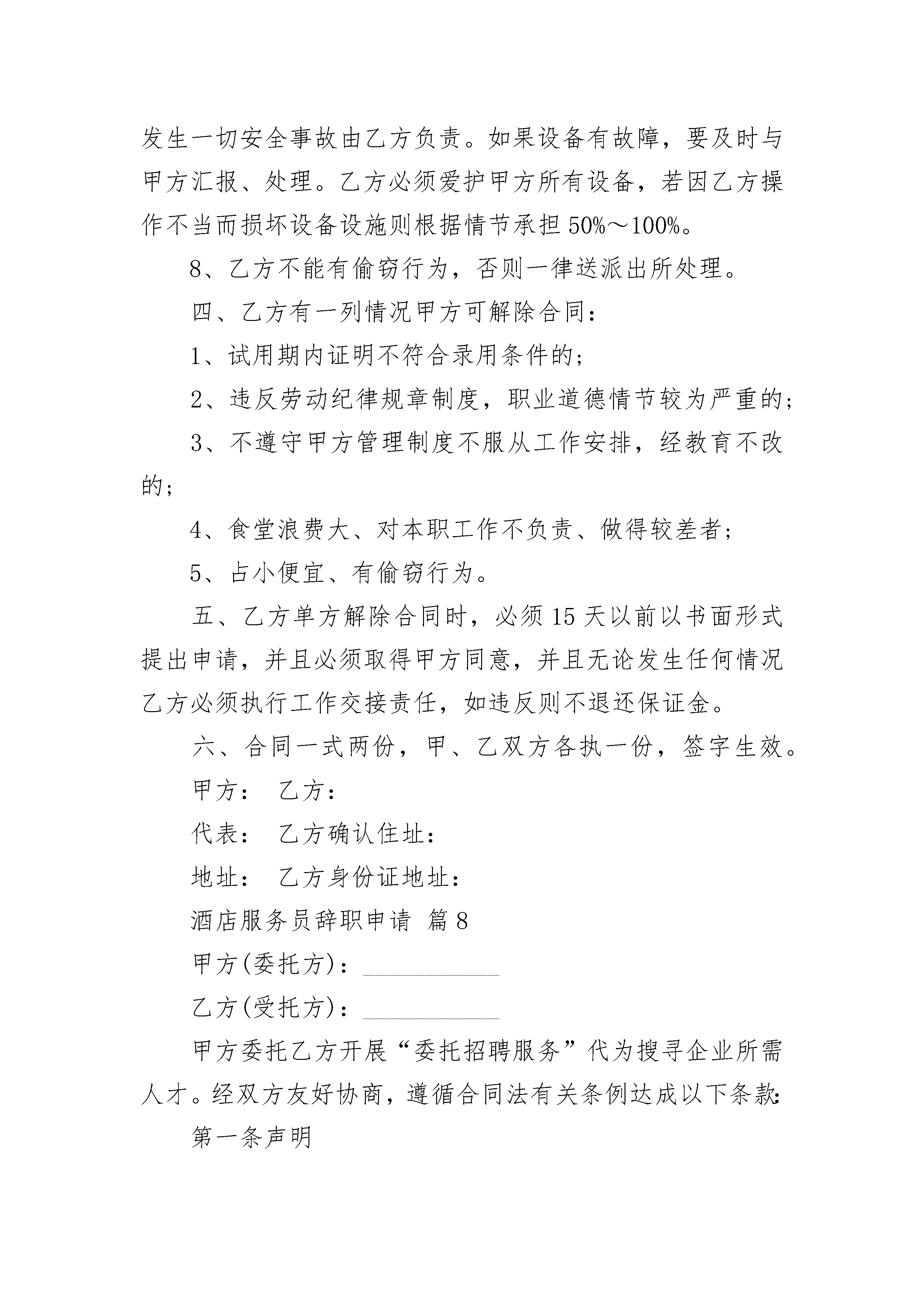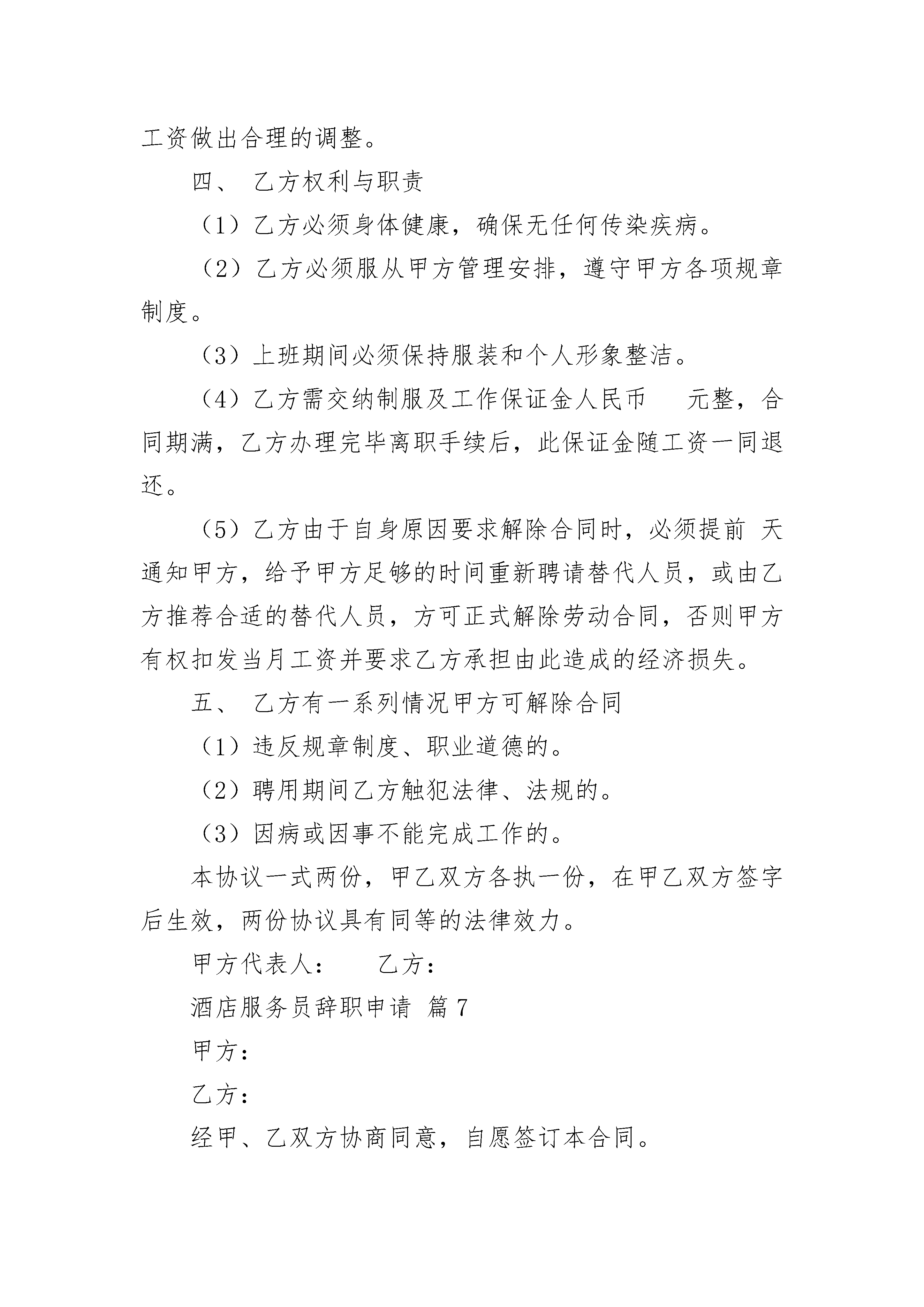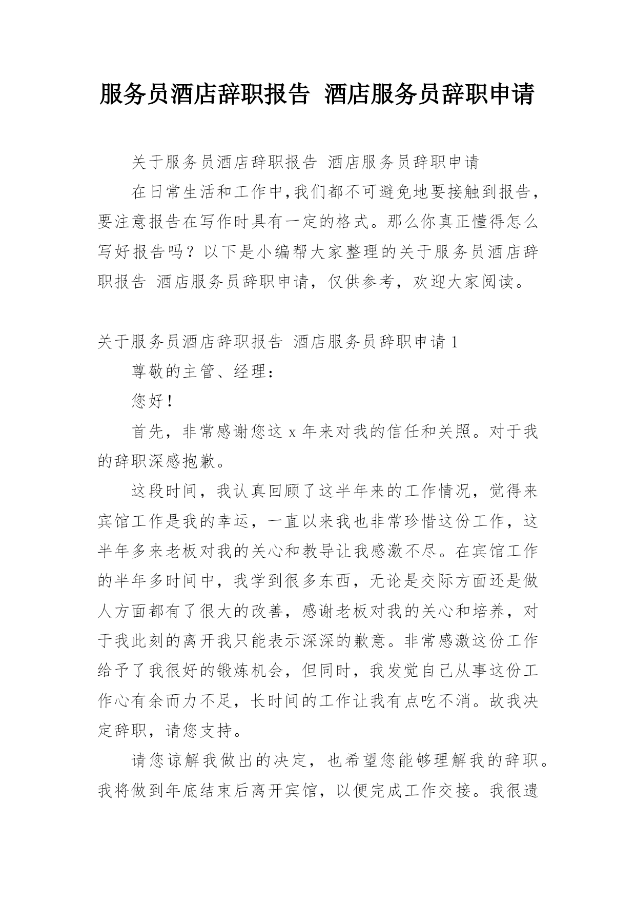服务员酒店辞职报告 酒店服务员辞职申请.docx