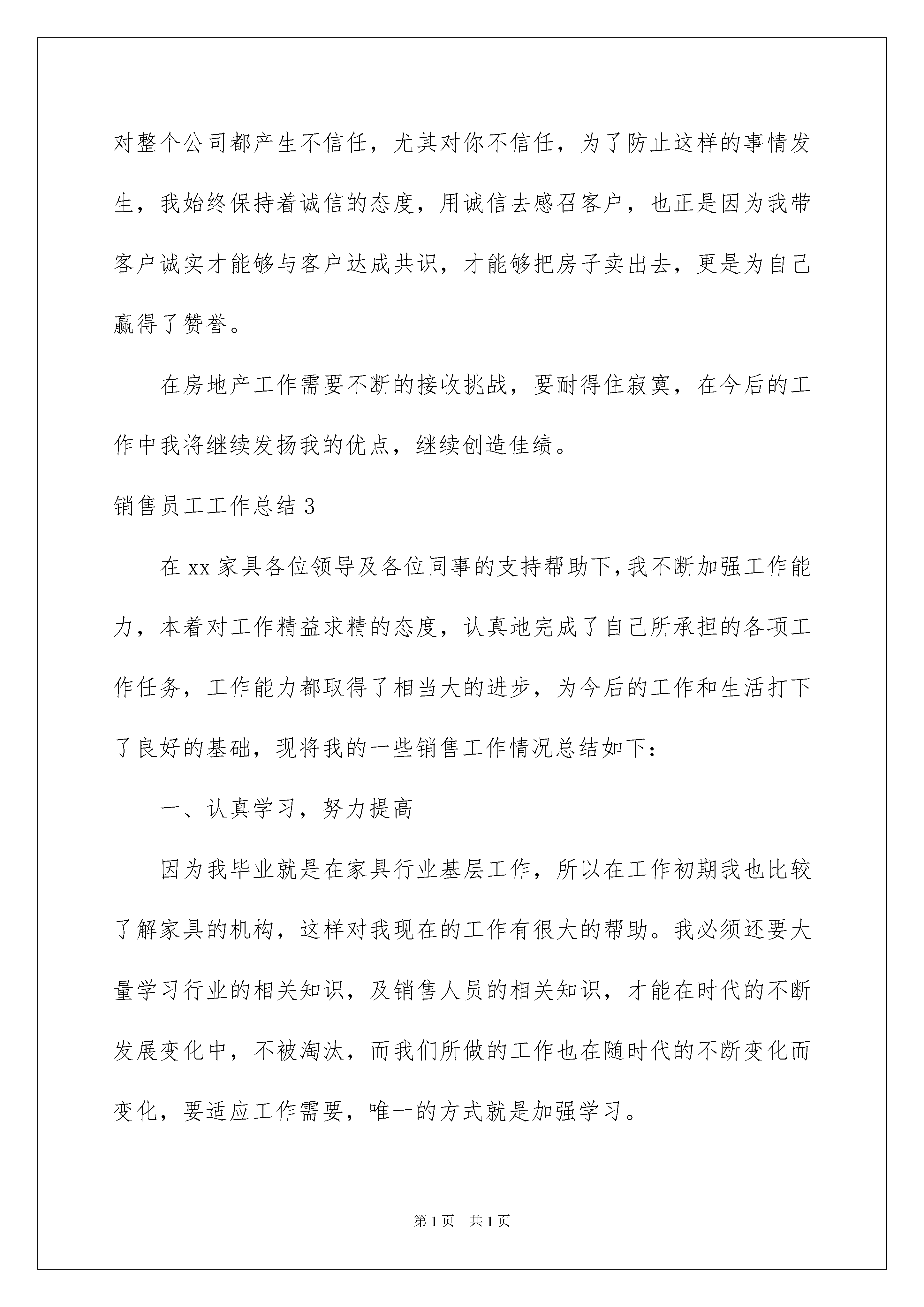 2022销售新员工工作总结销售新员工工作总结总结是对取得的成绩、存在的问题及得到的经验和教训等方面情况进行评价与描述的一种书面材料通过它可以全面地、系统地了解以往的学习和工作情况让我们好好写一份总结吧。总结怎么写才不会千篇一律