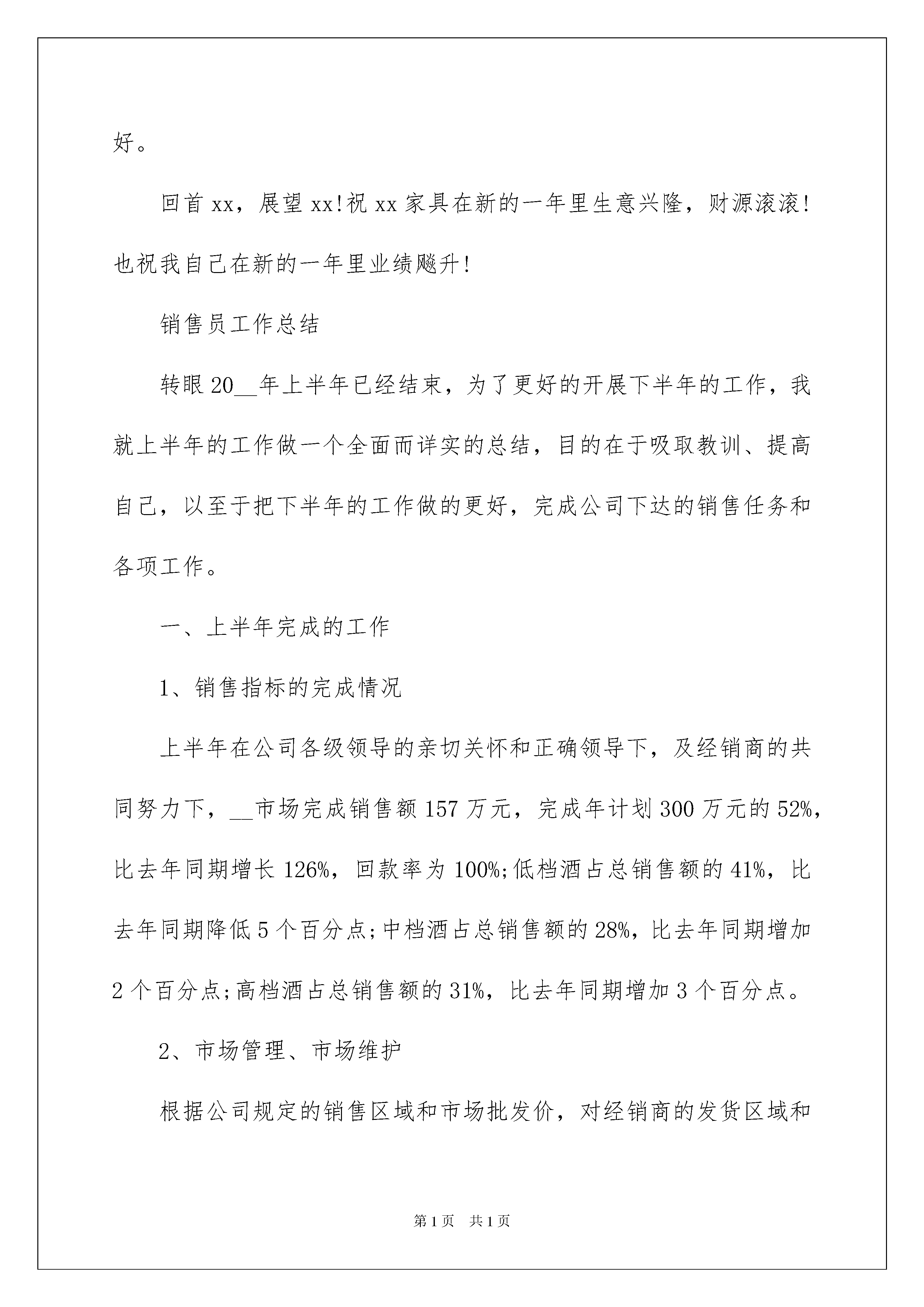 2022销售员工作总结销售员工作总结总结是对取得的成绩、存在的问题及得到的经验和教训等方面情况进行评价与描述的一种书面材料通过它可以正确认识以往学习和工作中的优缺点为此要我们写一份总结。总结你想好怎么写了吗?下面是我帮大家整理