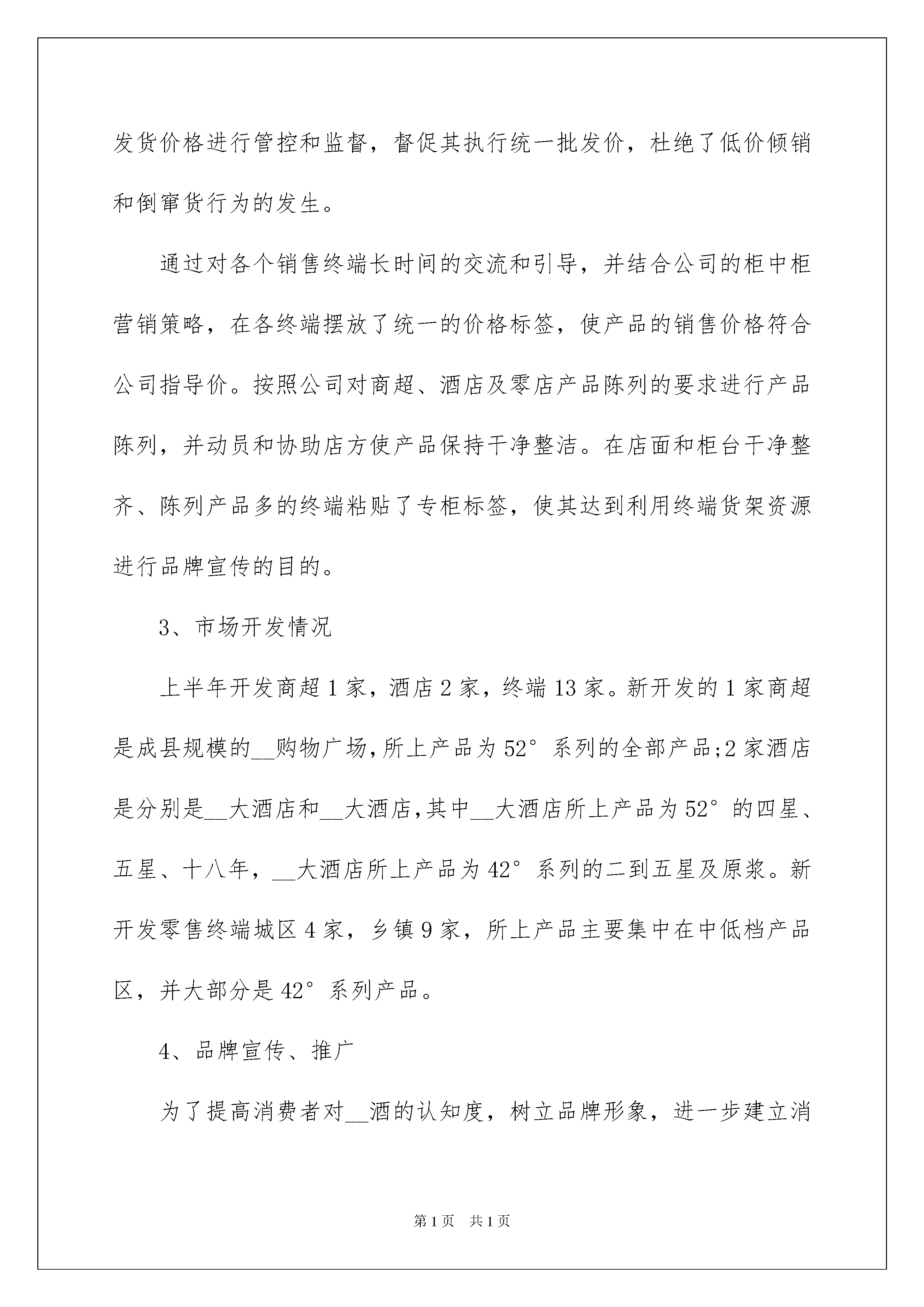 本文格式为Word版,下载可任意编辑第PAGE\*MERGEFORMAT9页共NUMPAGES\*MERGEFORMAT9页2022珠宝销售员工作总结_酒店销售员工作总结转眼XX年即将过去,我们将满怀信心的迎接2022年的到来。在过去的一年里,我们有高兴也有辛酸,总体来说,我们是圆满完成了公司所定的销售任务,在金伯利的三年时间里我们一直坚持真诚专业的态度对待每一位顾客,力求提供符合他们的款式经过努力的锻炼自己,基本能够掌握顾客的心理,利用顾客的心理抓住每一位有意购买的顾客,努力提高我们金伯利的