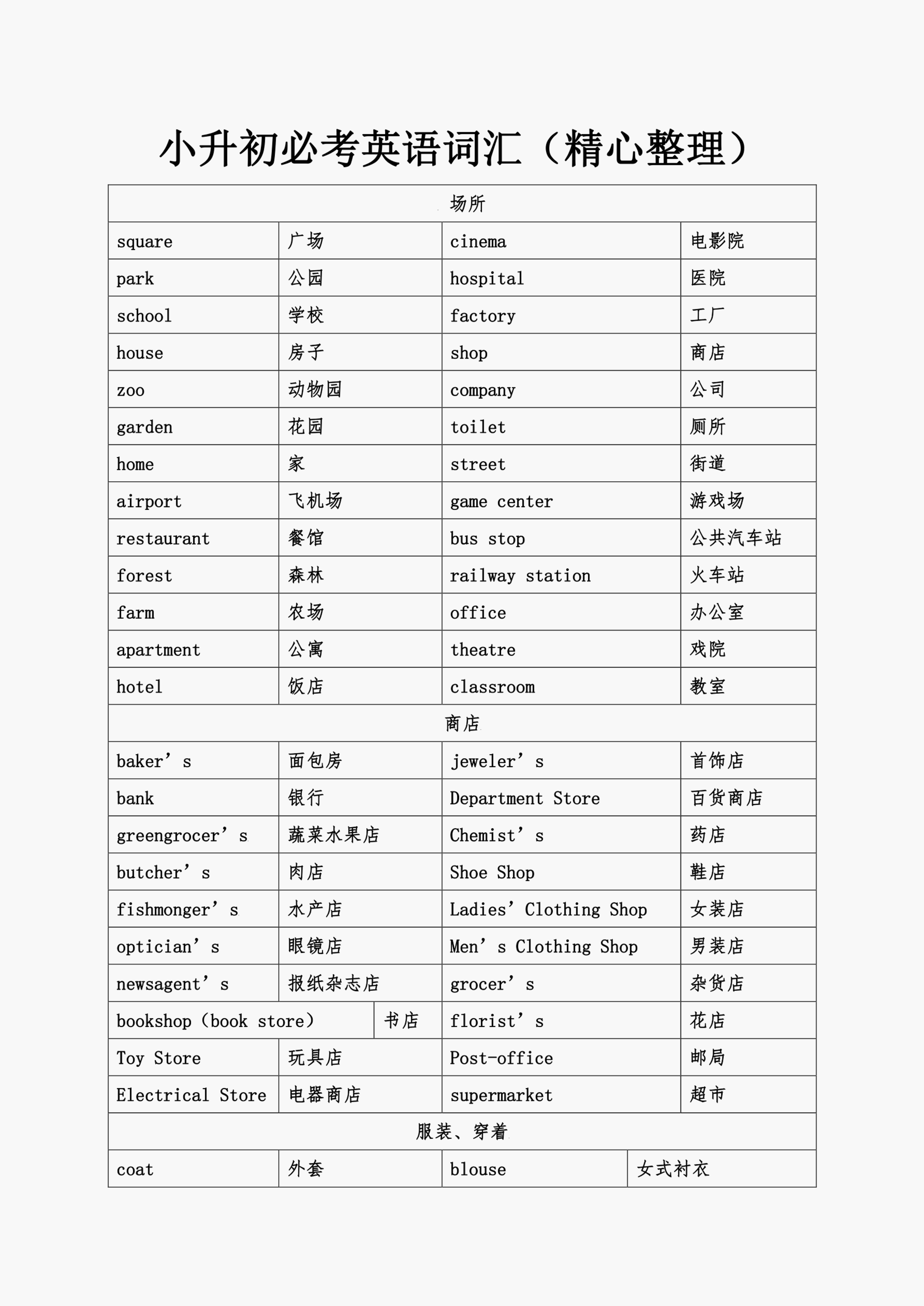 精品推荐小升初必背1000个英语单词【分类记忆】.pdf