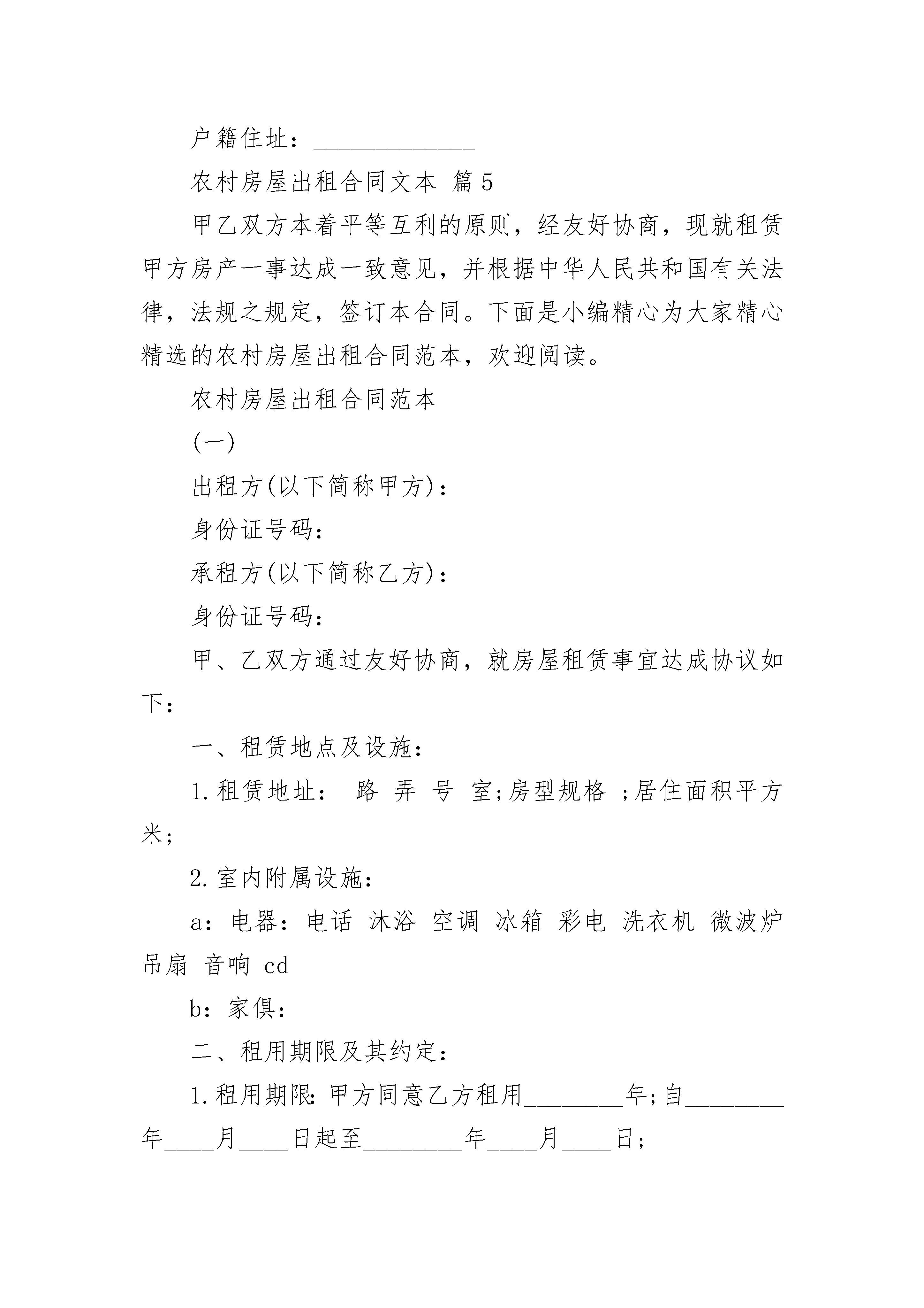 农村房屋出租合同文本.docx